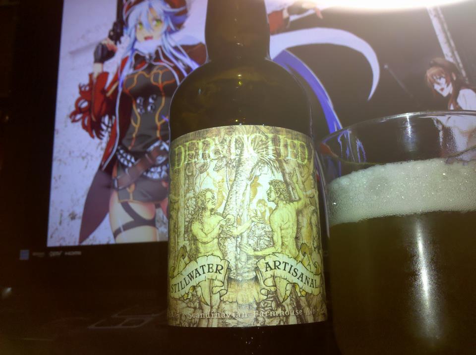 The rarest of the rare, or at least hard to find gangster, stillwater artisanal ales brings forth the Debauched (Import Series Vol. 5) Scandinavian Farmhouse ale. The last time I ever had the stillwater asrtisan ales was back when I had a chance to get a saison darkly, and the stateside saison. Both unique in flavor and something that can only be created by the very few, lower than micro brewery folk such as the dude that brews Stillwater Artisanal. The brews are hard to come by as the person, Brian Stillwater, works with some famous micro brewers such as Mikkeller to produce this magic potions. This one is brewed with help of Fan0 Bryghus of Denmark. I am such a nerd in brewing and having something as this special ale is something of a rare privilege really. The ale itself is a light golden sweet ale fermented with wild yeast as the style goes. Citrus, bread, vanilla, herbs, spicy juniper, flowery apple cider like flavor, wheat, and bubble gum. Magnificent and light and impossible to find. Hell, even eBay doesn’t have it, but surely some lucky people living in the east coast might be worthy enough to obtain it’s praise. That’s okay we have beers in California that are just as good or up to par :). But surely, a rare and favorite gypsy brewery for sure. As for the art…simply amazing…Adam and Eve about to savor that apple before the mob gets em…lol I am sure if the apple ever tasted so good, it would probably be something like this brew :d