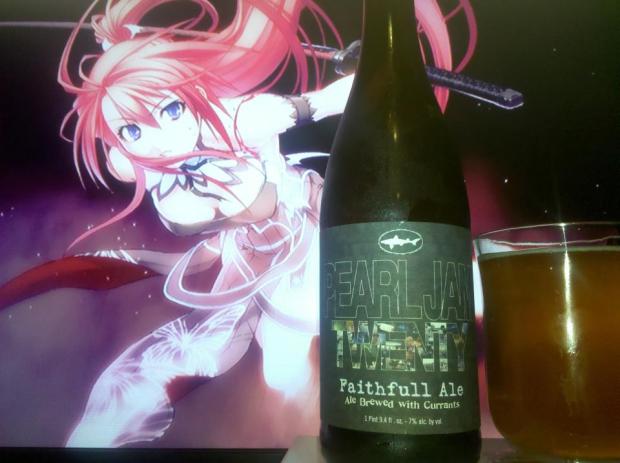 Faithful Ale by Dogfish head is an ale brewed with Currants that pays tribute to the success of Pearl Jam’s 20th Anniversary \m/. It is a light golden copper Belgian Style ale at 7%. For those people that do not know who Pearl Jam is or Currants are, well I will try my best to explain both. I’ll start with Currants :P. They are actually these sun dried seedless grapes. They are not like raisins a