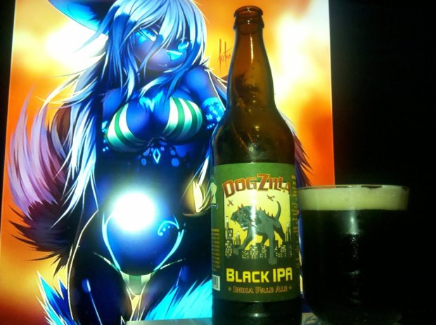 Dogzilla Black India Pale Ale by Laughing Dog Brewing is an twisted 6.9%ABV IPA. I admit I grabbed it because I am a big fan of the King of Monsters, Godzilla but also because it is an IPA. A malty twisted monster. This beer is something very few people will like. Trust me, unless you have developed a taste for sour ales like Jolly Pumpkin, then don’t go near this one. It bites back. I have had different IPAs in the past. Some more fruity, sweet, chocolaty and bitter. Not this one. LOL Oh no!!!…I would assume if someone took an IPA an turned the bitterness into sourness then this is it. I have never tasted anything like it. But honestly, it has it’s own charm that I like about it because it is so different. You start off with citrus and pine flavor and then you go into grape sour chocolate malt central. Fruitiness of caramel and cherry are very minor as the monster of the sourness and funkiness overwhelms the rest of the beer. The bitterness actually acidic in nature. As you go on, your taste buds should be numb enough to taste something good here some sweet chocolate and coffee. They sure let the dog out. Even the label says that this beer is very twisted: