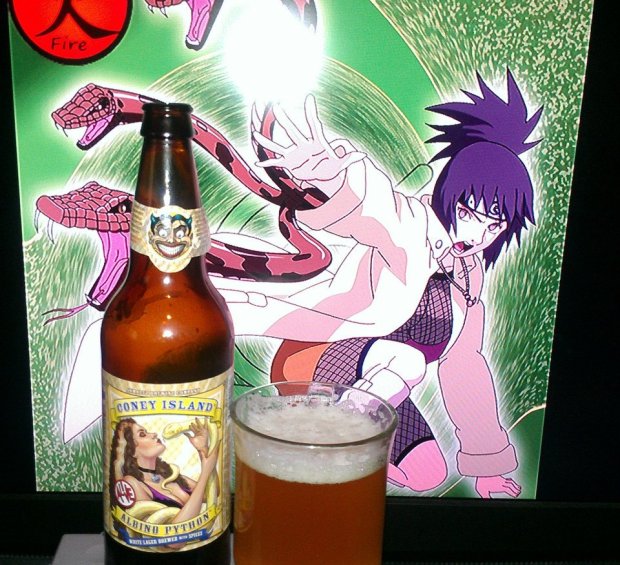Albino Python by Coney Island is a white lager brewed with spices. This is the second time I pick up this beer and needless to say, it is a great beer. Mainly because it is a lager at (6.0%) which means unlike an ale, is fermented in cold temperatures rather than warm temperatures. This allows the brewers to take more control over certain flavors during the brewing process. This beer adds ginger, fennel and orange peels. The result is more of a Wit lager. It has those Belgian White, Coriander spice flavors but with more of a caramel pilsner malt light taste as well as some piney and citrus. Amazing how this brewery can brew beers in lager form and provide something that is well, rich in flavor, and very, very refreshing :P.
