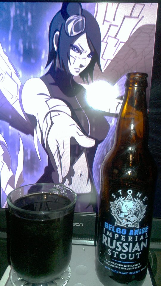 Stone Belgo Anise Imperial Russian Stout 2011 “ODD YEAR” Edition…(Long Name :P..lol) is an Imperial Russian Stout by Stone Brewing rating at 10.5% ABV. First pour is basically pure dark liquid. Hardly any fizz period!!. Evil looking in a way. So much in fact that some may shy away as they would not want to be doomed at the fiery pits for even thinking of drinking this potion. No worries though, the guys at Stone assure that the Gargoyle has scared away all the evil preservatives and spirits. All the sinning part is left up to your discretion. It is brewed in the old historical Russian Stout tradition but well with added epic ingredients. It is fermented with Belgian yeast, Oak chips and Anise. For many that may not know what this is, it is the herb that is used in alot of dishes, drinks and candies. Some may remember this flavor like licorice and root beer. Much like the regular stone imperial stout that will come later this year that has flavors of black currants, coffee, dark chocolate and some minor anise, this one actually is exploding with Anise flavor.The combination of all the aged ingredients in simple terms is like having one of those Hotel chocolate mints they have on top of the pillows. Minty, chocolate/coffee and licorice bread with dark fruits such as the currants and raisins and spicy vanilla. For those that don’t like licorice, it is not bad at all as the licorice flavors is hardly there because it evolves into the mint chocolate cake flavor. Man this is good but sadly…hard to find :(… Spent a while looking for this but if you are a fan of stouts and dark Belgian ales, find it right now!!!…who knows…this years beer might be more different than the 2011 one 😉