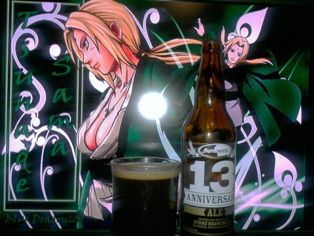 Bottleworks 13th Anniversay ale is a 11.4%ABV Strong ale brewed at Stone for Bottleworks of Seattle Washington. Every year they make a brew with different brewers to celebrate their anniversary as stores are not allowed to brew their own beers unless they have licenses to do so. So they decided to make their beer with Stone for their 13th anniversary. The goal in mind was to create a beer that had so many different malts and hops (13 of each to be exact) that it would encompass what the 13th anniversary of flavors would be. This was the result. This bottle includes: