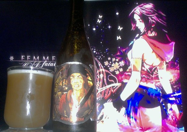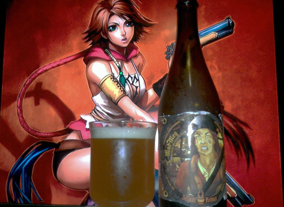 Mad Meg Farmhouse provision ale by Jester King is a 9.6% ABV Farmhouse saison ale that was traded to me for some Lost Abbey by my good friend from Austin Texas. Thanks Matt :D!!!! This beer reminds me of a Belgian Pale Ale like the As Follow Eschatological Ale I had a couple of weeks back. The irony how they both talk about hell…lol. Difference from that one is that this one has more sweet orange citrus than bitter grapefruit. The wheat definitely makes it happen here. Some notes of banana clove are in there as well. The beer states about the character breaking the status quo and becoming a bad ass and she will damn you to hell if you get in the way…..simply EPIC!! So what is this beer like? The beer has an awesome sour and bready wine flavor from wild yeast but it also combines well with bitter grassy and pine hops and the orange wheat flavors. It is a Belgian Hoppy saison that leans toward a German Hoppy saison. Leaves with like and apple and peach after taste that lingers for a while. Rich and creamy as well. Surely this came from the depths of hell..straight into the Jester King recipes to become well….fucking delicious!! Saison and Belgian beer lovers, if you can find this one then pick it up. This is brand new stuff from Jester King of Austin…