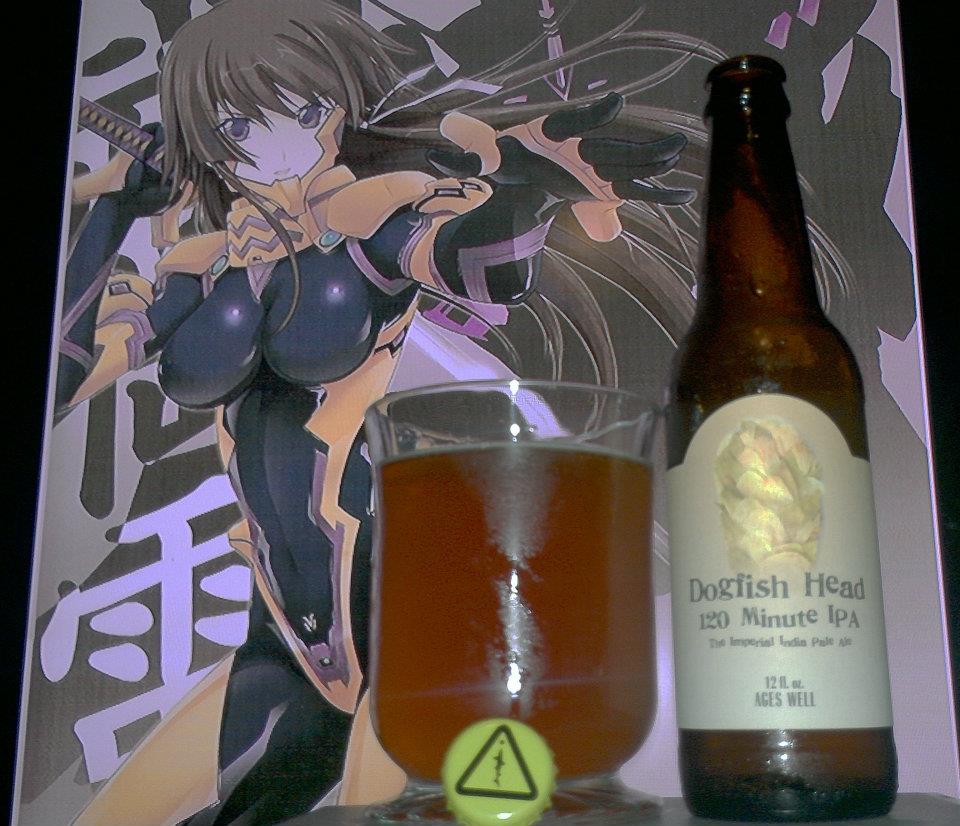 Pure IPApicness :P….Super strong 120 minute IPA by Dogfish is a brew quite different from any IPA I have had really. Most IPAs tend to be hoppy and bitter. For some reason when it comes to high alcohol beers, such as this 18%ABV IPA, they seem very sweet. DO NOT DISCERN…as sweet to the taste bud is actually more alcohol when it comes to high alcohol beers as I have tried so far. The devil is in the sugar basically…Anyways. This beer not only being very sweet, very strong in alcohol, it is surprisingly so bitter in IBUS…120 to be exact….Funny thing is, humans can only sense about 100 or so (Thank you ruination ale :P), that the bitterness means nothing here. You are more overwhelmed with grassy hops, sugar caramel, honey, piney,Mango, apricot, peach, grapefruit, orange, strong delicious alcohol (classy), and just a sweet mellow drink ability. It is amazing how well the bitterness is masked…LOL its so strong you dont even feel it…you will feel the alcohol later but your too busy drinking it that you sense nothing!!…other than nectar of gods :O….I love this IPA, one of the best and one that was not easy to get at all…. Salute to you Dogfish head you out did yourselves 😛