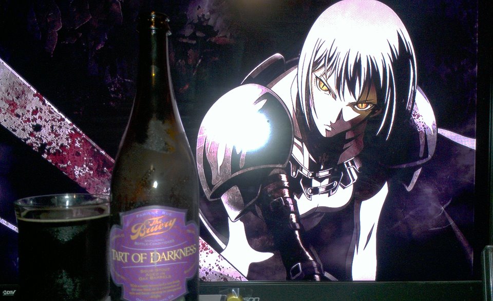 Tart of Darkness!!! by The Bruery is a 5.6% ABV Stout aged in oak barrels with wild yeast. The last known sour stout I tried as Madrugada Obscura by Jolly Pumpkin so trying this I had to see what it was all about. In comparison, I would say this beer focuses more on the sourness and dark fruits while Madrugada focuses on more dark chocolate and roasted coffee. The over all is still sour though. So how is this beer? Well, I am fan of a lot of different beers especially sweet beers. I like sour beers when done right. This one was done…amazingly right!!! While the overall beer is tart and funky sour as most of sour beers go with their wine and vinegary taste, this explores into some good dark fruits along with the dark chocolate, and smokey roasted espresso coffee notes. Cherries, raisins, caramel, chocolate, vanilla, oak wood and alittle bit of toasted bread is in there. Surely not a beer for those that do not like sours or stouts. Most people may actually find it hard to drink, but exploring into what this category of beers does take an open mind and an open palette. So choose wisely….do you dare enter the dark side with this medievil potion >:P