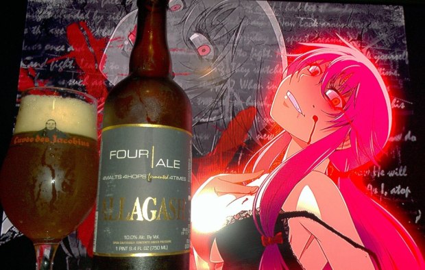 Four by Allagash is a 10%ABV Quadrupple Ale. Made with 4 hops, 4 malts, and fermented 4 times using 4 types of yeast strains. What can I say, I’ve never have tried their version of a quad ale. I have to admit, I like it….alot. One of the key ingredients that shines through, aside from delicious quad dulce de leche flavors and sweet bread, is Vanilla, Bourbon, maple, earthy caramel and somewhat grassy hops like that of an amber almost. It is not like a coffee but more of a pecan nutty flavor. The quad flavors of bread, dulce de leche cream, caramel, dark raisins, plums, grapes and candied sugar still are there as well as pears, apples, and some sweet grapefruit. I think mainly from the hop. Interesting quad none the less and worth a try. A definite recommendation if you do happen to find it.