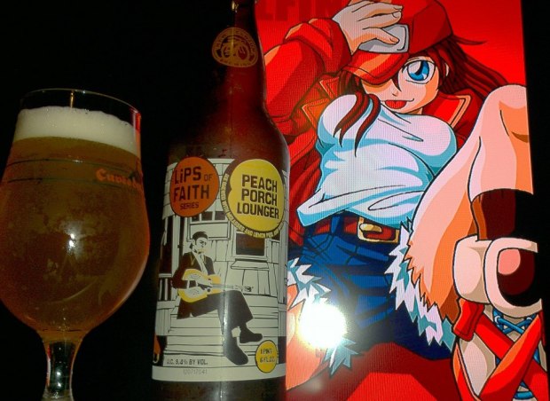 Peach Porch Lounger by New Belgium’s Lips of Faith Series is a 9.4%ABV Saison brewed with Molasses, Hominy Grits, Lemon Peel, biscuit malts, Brettanomyces and Peach juice.