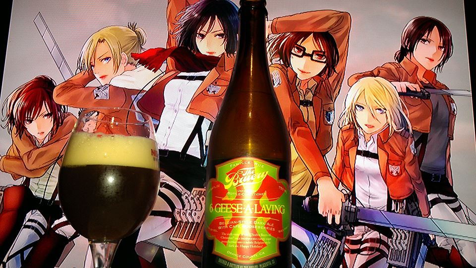 Sasha Blouse as well as the main Attack on Titan girls were used in this pairing to connect the 6 Geese-A-Laying from last year. I wanted to focus on Sasha for this one since she has not gotten a chance to step into the light with her own beer pairing much and the fact that when it comes to food, she is awesome and funny. The rest of the girls not in their uniforms and out and about represent the 6 geese-a-laying including Sasha with the cheeseburger. Bourbon barrel aged beers do certainly bring about the complexity and inner most works of a beer 🙂