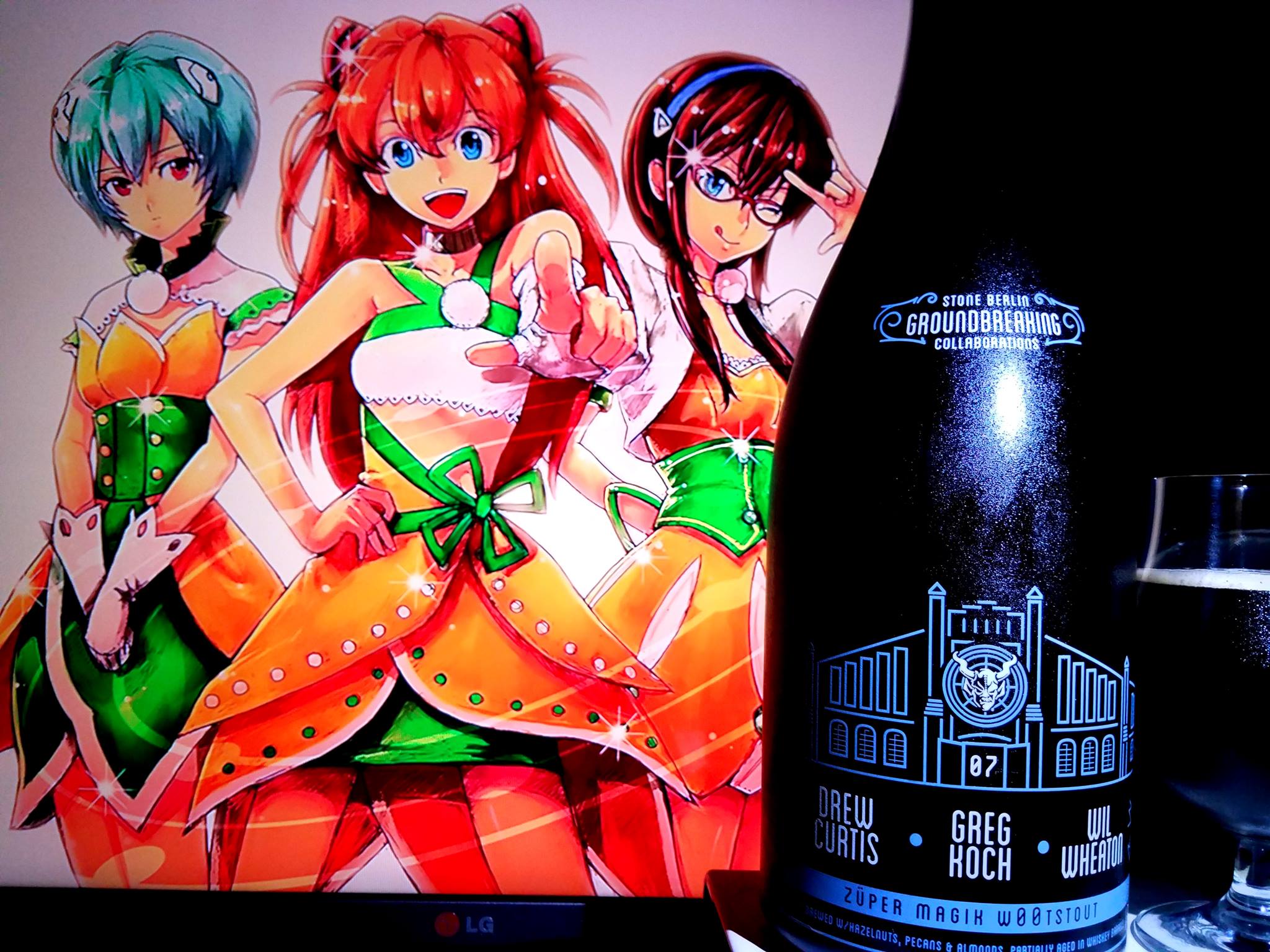 Mari Illustrious, Rei Ayanami and Asuka Sohryu Langley/Shikinami from Neon Genesis Evangelion were used for this iteration of W00tstout just like I have used them before in the past. This time around though, I wanted to show some extravagant to complement not only some of the German side like when they dressed up in the green synonymous with Oktoberfest but also some superstitious art like with them on what appears to be a tarot cart. I have used them in man iterations of W00tstout but this time, some of these are a bit different and out there. Kind of what I wanted in terms of showing what is so Zuper and Magikal!