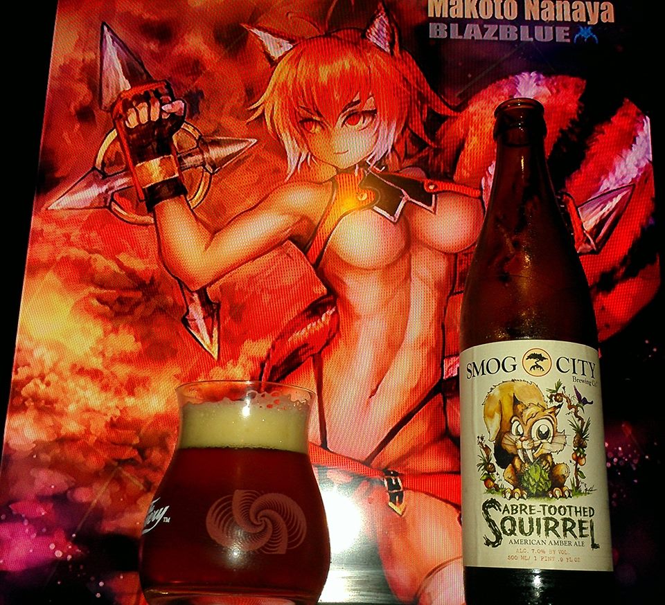 Makoto Nanaya from BlazBlue was used in this pairing as she is the cutest squirrel girl in anime and video games I could find. She is a powerful fighter so I believe just like the hops are the bite of the sabertooth squirrel, she will kick your ass in such fashion. She is cute as hell like the little squirrel and is probably as sweet as well once you get acquainted.