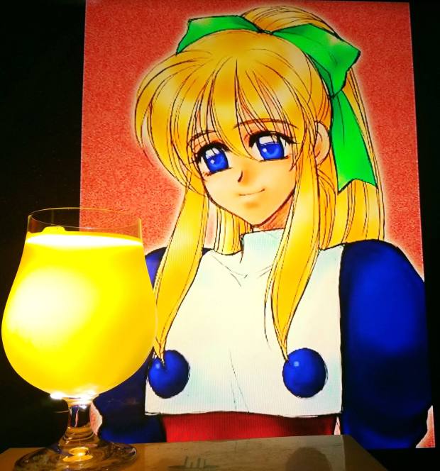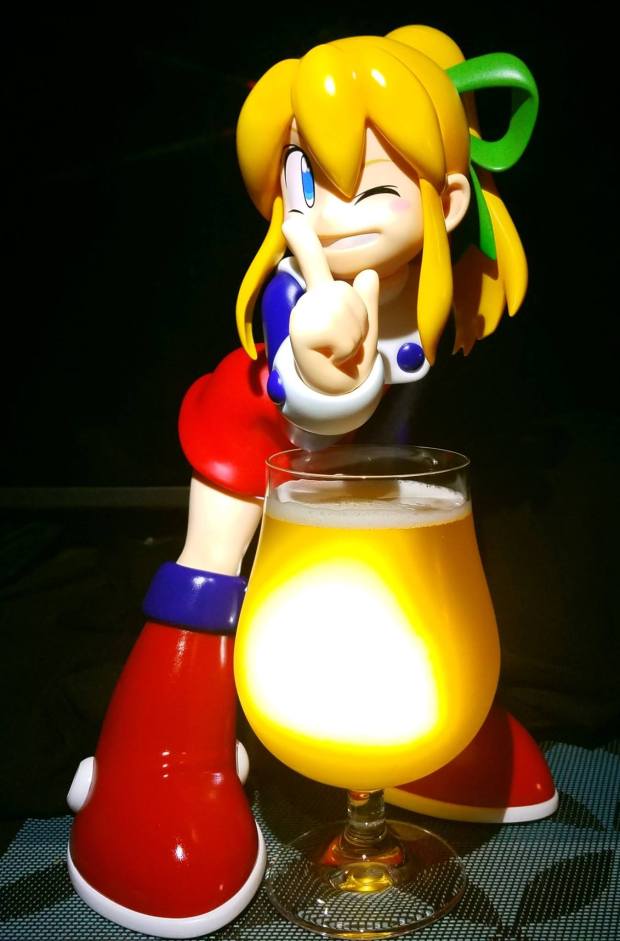 Roll Light from Capcom’s Megaman series was used in this pairing because it made a lot of sense. I wanted a light beer, both in ABV (although it did not come out that way although the mouthfeel and drinkability says otherwise) light in color (you can shine a light through it, like a lightbulb) the pun on her name and how the beer just “Rolls” through smoothly. The sessions part is in reference to a beer you can drink anytime and even during “Music Sessions”. The original Megaman was named Rock and his sister is Roll, so that is the connection to music and just having a beer in general. The every day beer as recommend by the Dr.’s assistant Roll. Also, in terms of the style, a hoppy blonde in terms of color, she is a blonde and her green ribbon is representative of the single ounce hops of Mosaice used for this. Mosaic is a damn amazing tropical hop even for a small amount.