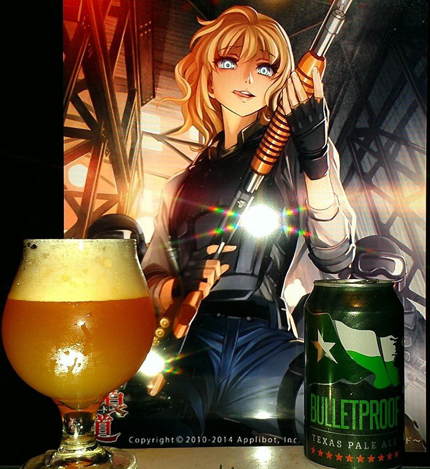Furyou Michi from Gang Road was used in this pairing to pair mainly with the name of the beer, Bullet Proof as she is wearing a bullet proof vest. The other things that I see with this picture are that her hair is the color of the brew but also with this beer having the Texas flag represents a bit of Texas pride in terms of gun ownership.
