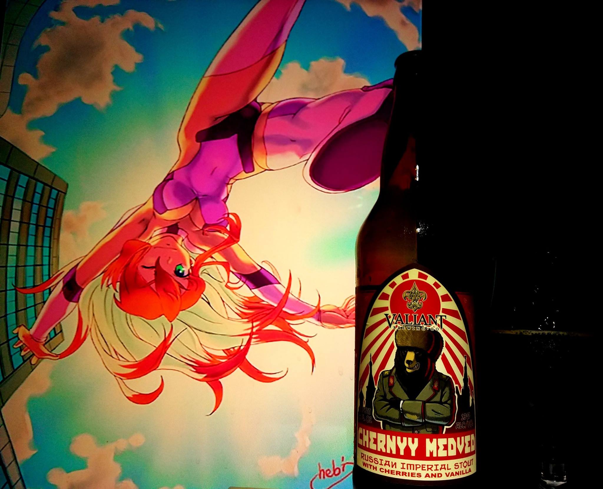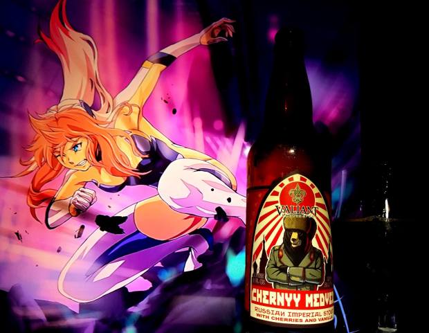 Chernyy Medved Collaboration by Valiant and Black Market Brewing is a 13% ABV Russian Imperial Stout brewed with Cherries and Vanilla