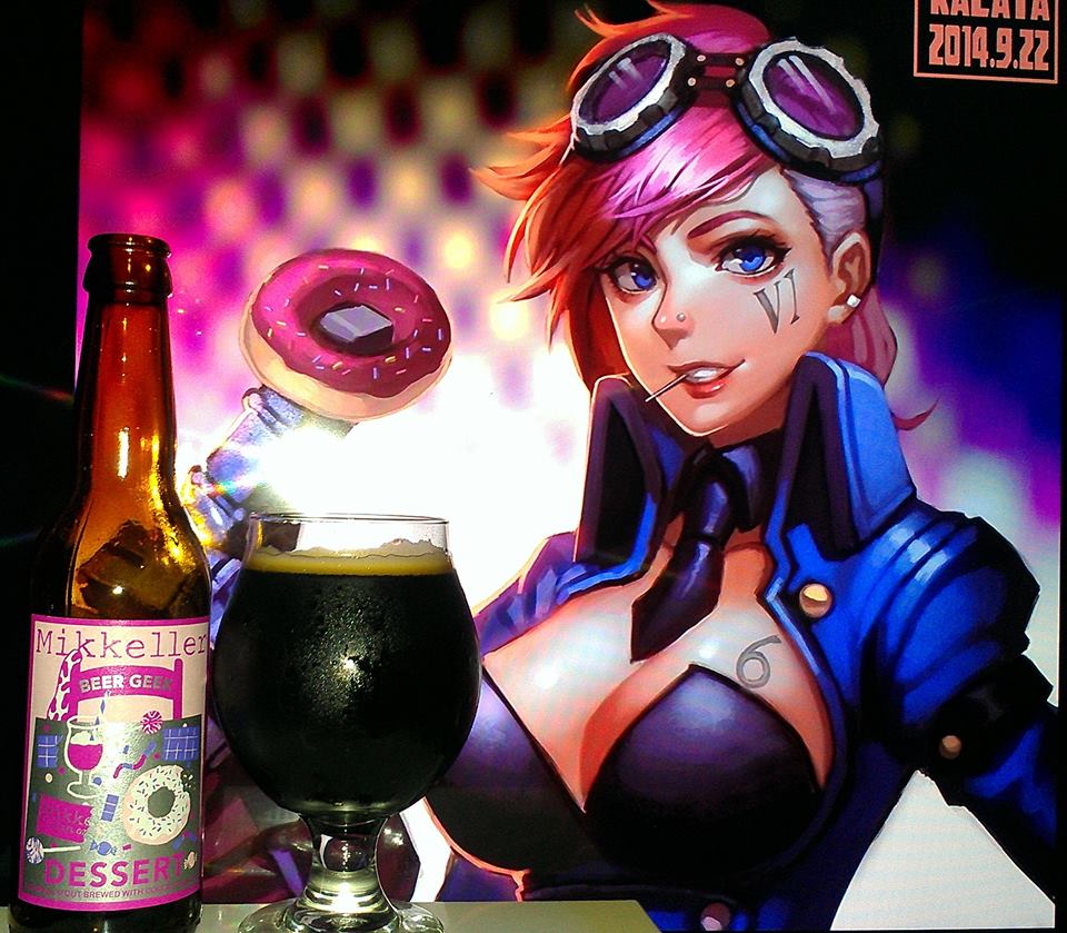VI from League of Legends and original desserts character by Shon was used in this beer heavily due to the colors and the variety of sweets and dessert and flavors this beer brings to the table. You can tell a lot of the items pair and while I may not know much about either of these characters, I felt visually it was a damn perfect fit.