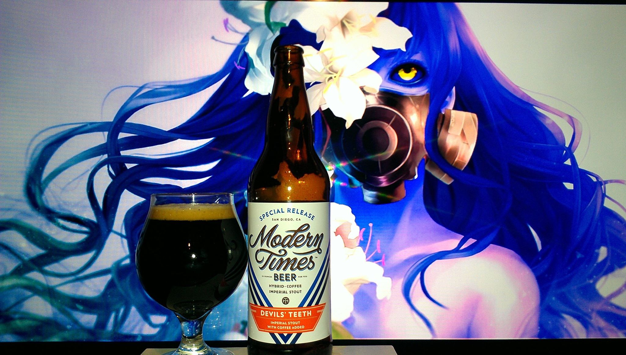 Devil’s Teeth by Modern Times is a 10% ABV Imperial Stout/Old Ale Hybrid brewed with their House, Ethiopian and Sumatran Coffee.