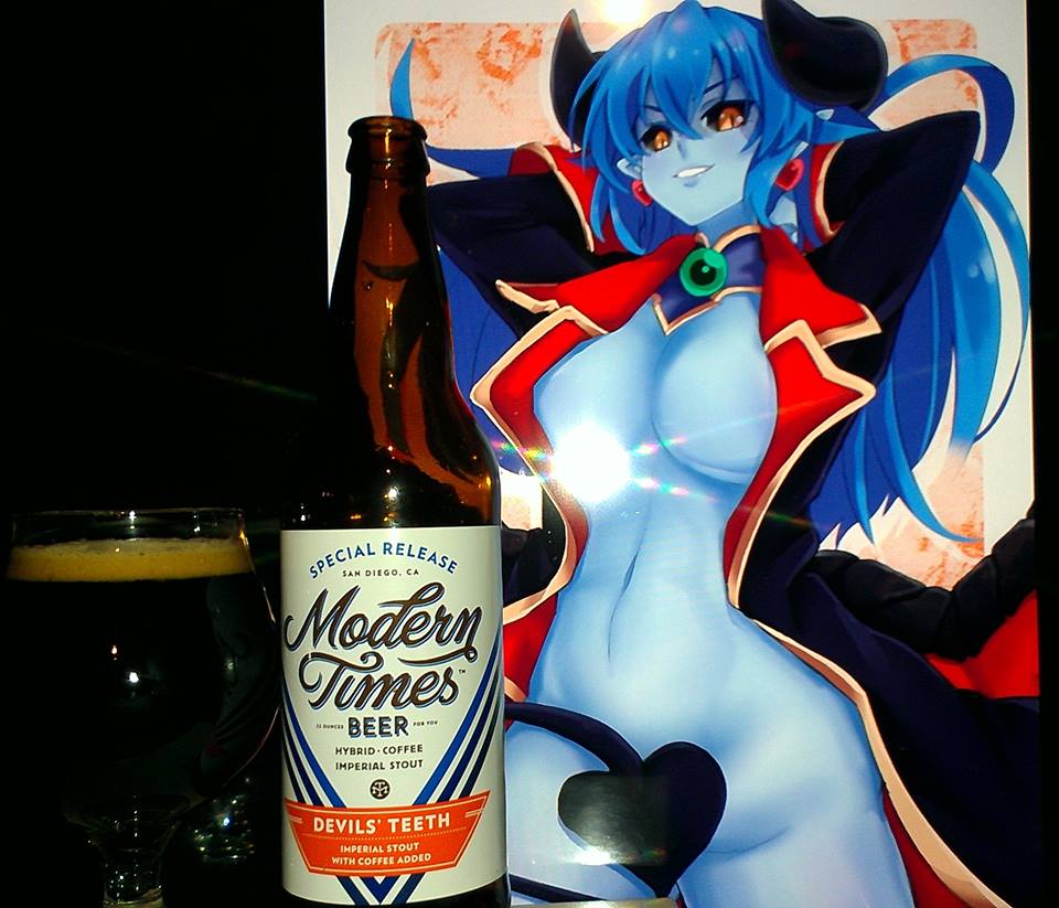 Devil’s Teeth was released by Modern Times back in September 2/15. Originally, the one they had released was the Mezcal version. Unfortunately, I did not know about it and I would have to have travelled to San Diego to get it. I am glad they released the original but what made me more excited is what this beer label and the name reminded me of. I will explain this part in my anime corner section of the review but basically know it was nostalgic of something in my past. With that being said, the mix of coffees intrigues me to see what type complexities might come about from this. Cheers!