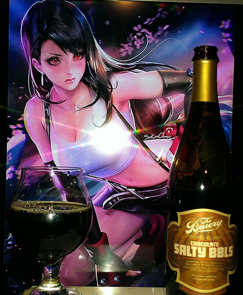 Tifa Lockhart and the Final Fantasy VII cast as well as Chef himself from South Park were used in this pairing for many reasons. Right around the time South Park especially this song became famous, I was still in high school. Back in 1997, Final Fantasy VII was released. I got the game around Christmas and around that time I was heavily invested in wanting to get a Playstation to get this game. My friends Alfredo Gutierrez and Jose Almanza introduced me to the Chef Aid: South Park Album with the Chocolate Salty Balls song on it near the end of 1998. So the fact that these 2 things came out around my High School years, it was a good reason to bring them together with this beer pairing. A tribute to the South Park song and my RPG playing childhood. LOL Anime Chef Rules!!