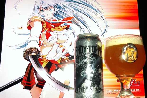 Ryoko and Washuu Hakubi from the Tenchi Muyo series were used in this pairing since I had used Ryoko before for Pliny the Elder. Washu will someday be used for the Younger although the funny part is that Ryoko is the daughter and Washu is the mother even if she looks younger. Conundrum yes, but if you knew about Washu, she is 20,000 years old. Either way, you can see the colors pair up well with the artwork and the label. Ryoko’s light teal hair color represents the super hops but as well as the whole aspect of the ‘Elder’. Ryoko is young but I love how she sits contemplating or wondering. Like an elder thinking about the future or just simply day dreaming like a kid. Regardless, this beer is the kind that you take your time with and relax. You may not have another chance to try it, so might as well enjoy it since you can’t age it either.