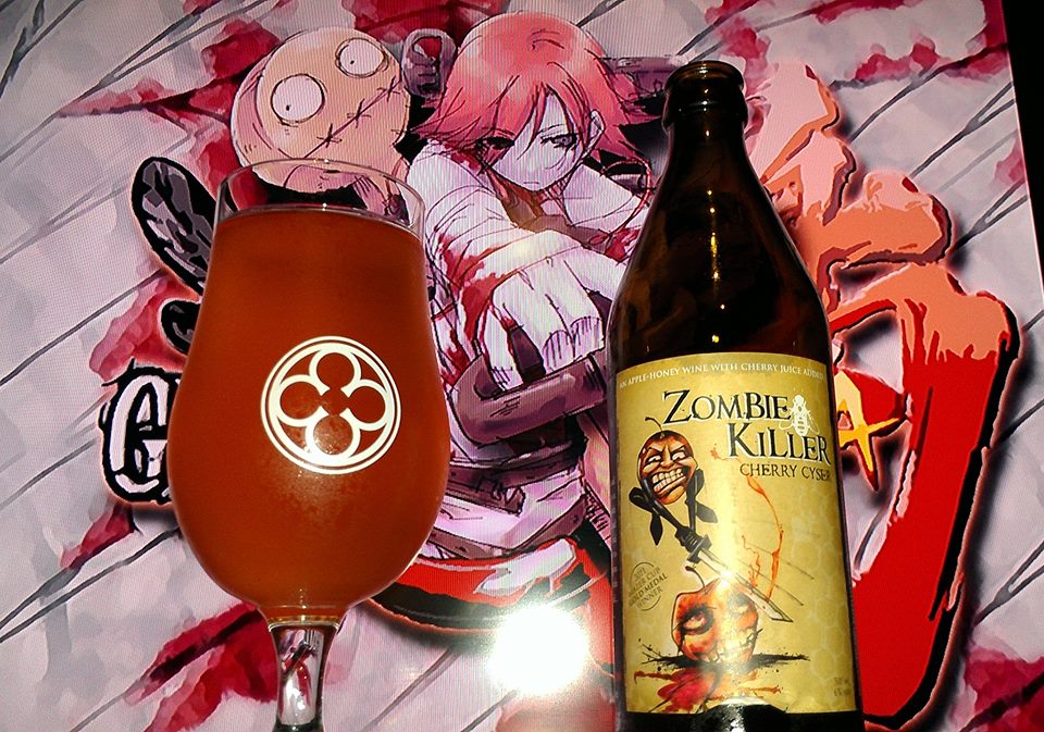 Thus begins, the second chapter in the story of the zombie killers. Equipped with a sweeter and stronger tasting arsenal, I am sure will be awesome. This is the second Mead I get to try and the barrel aged version of the one I had reviewed which was very delicious. Check out the first chapter here: https://brewerianimelogs.wordpress.com/2013/09/12/zombie-killer-cherry-cyser-by-b-nektar-meadery/