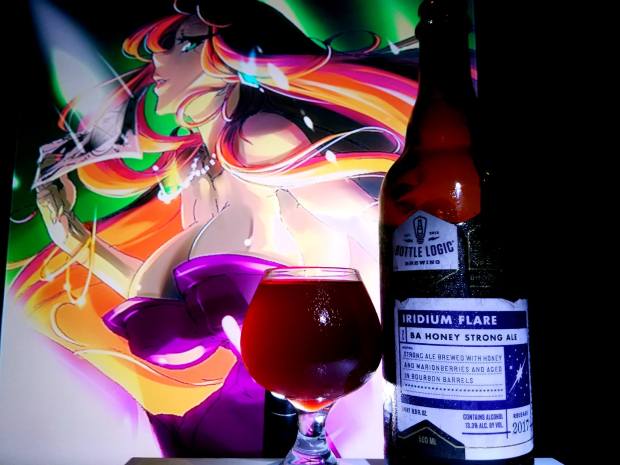 2017 Iridium Flare collaboration by Bottle Logic and Superstition Meadery is a 13.3% ABV American Strong Ale brewed with Honey and Marionberries aged in Bourbon Barrels.