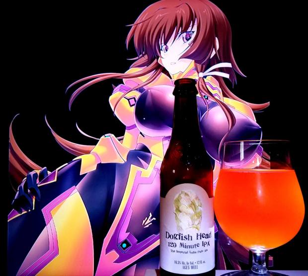 Yui Takamura from Muv-Luv Alternative Total Eclipse was used in this pairing as I used her to pair with the original in the original pairing of DFH 120. What I was going for back then was a bad ass looking character that pairs with the colors of the flavors and possibly the golden colors of the beer and the label. So bringing her back and expanding with more art was something I felt worked.
