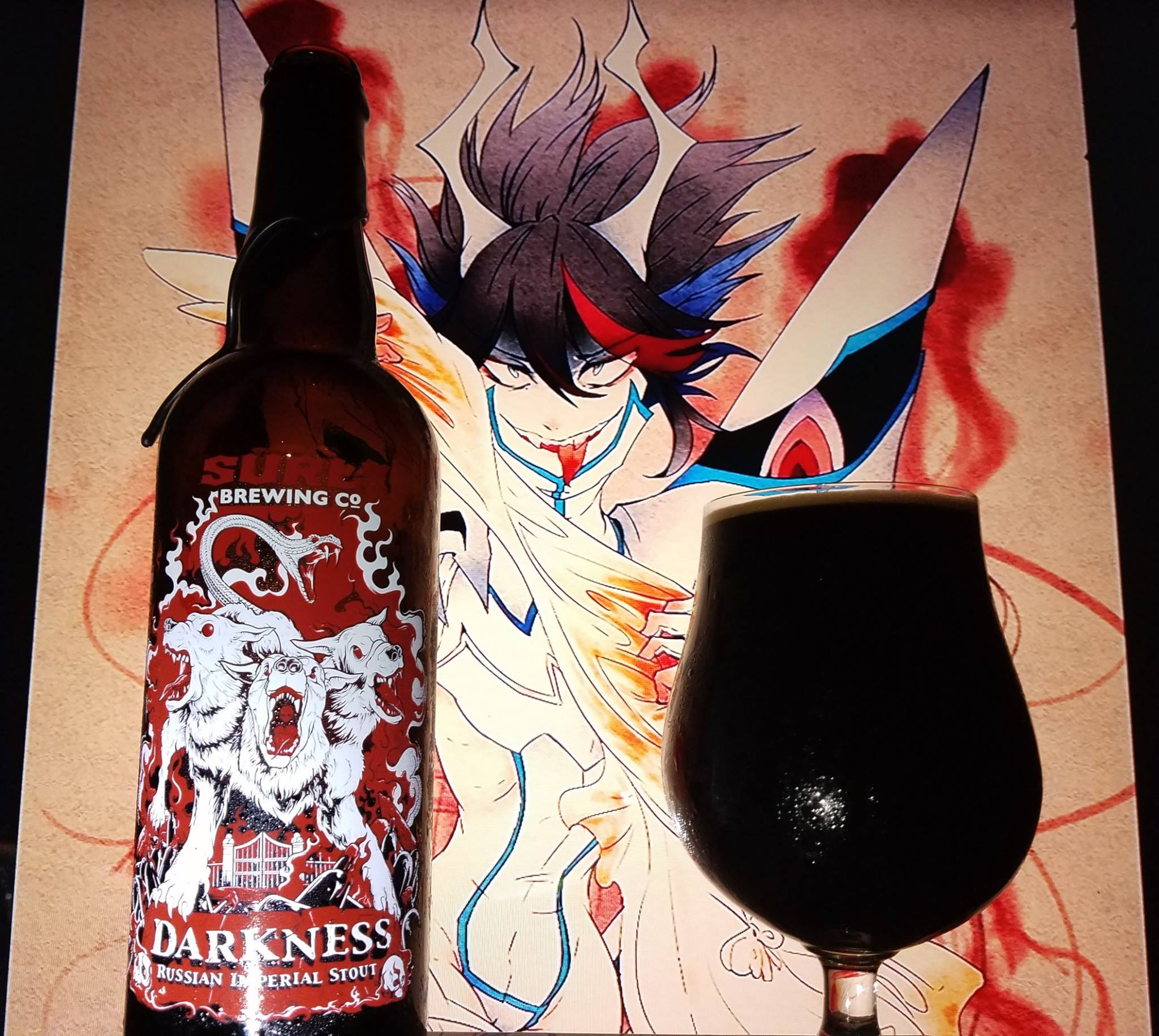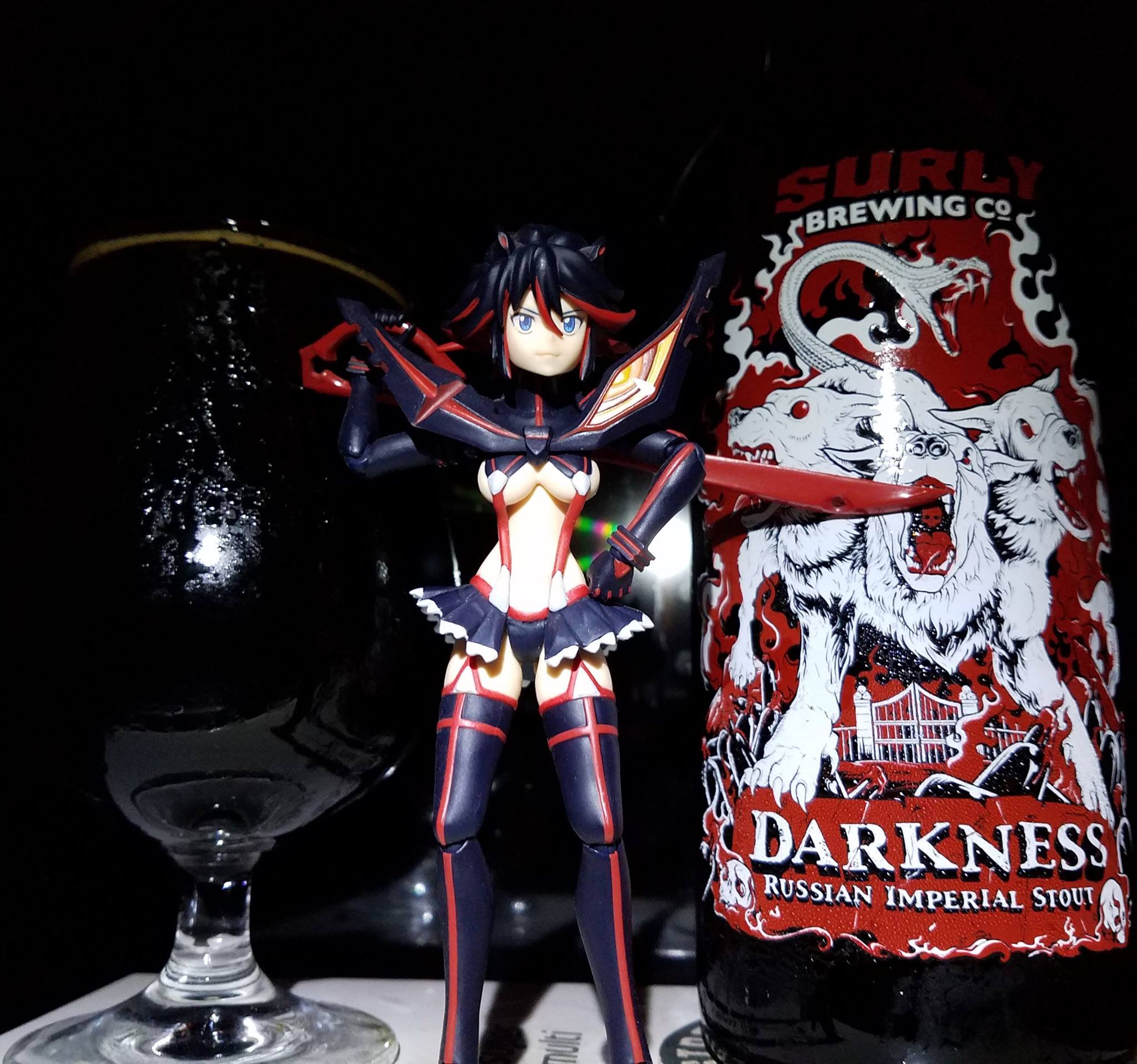 Ryuoko Matoi is a character from the Kill-La-Kill series. A fierce and ruthless character who shows no fear when it comes to finding her father’s killer. Her outfit and and personality best fits the label as well as the name, Darkness, although since the beer is pretty sweet, it is a part of her personality that makes her self conscious of her body while fighting.