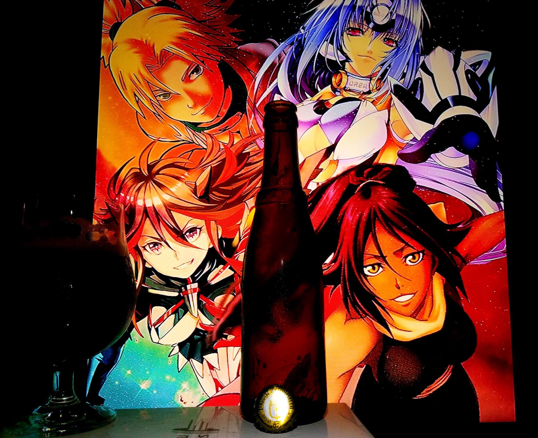 No doubt, Ryuko Matoi from Kill La Kill was chosen for this pairing to pair with many of the different aspects of the beer. The label, the flavors, the ingredients the alcohol and especially since she is one of my favorite characters in Anime right next to my other top 3 (Kos-mos, Yoruichi and Temari). I have yet to pair a Bruery beer with her and what a way to seize the opportunity but to use a beer that is super rare and delicious indeed. The colors pair perfect with Ryuko’s hair, the background, her eyes and her outfit as well. If this was a candidate for Mardi Rouge (Red Tuesday) then even more the reason to use her for this pairing. The alcohol content represents her will power and strength, The complexity of the flavors showcases her unpredictable characteristics. She always has a plan up her sleeve. She is deadly and sexy which best describes how smooth the beer goes down but deadly since it has the really high ABV. The beer is dark but it is a blood red dark as you get closer to finishing the glass. Her suit Senketsu (Fresh Blood) describes this as she needs to let senketsu take some of her blood in order to unleash a higher power. Perfect for that red wine aspect and the color as I mentioned earlier. Ryuko is strong and tough minded, but she does have her sweet,warm hearted and loving side which she shows to the people she cares about. The sweet chocolate and berries is what best places this category. Take it easy with her, you won’t find one like her again, maybe. Either way, it will be a very memorable experience :3