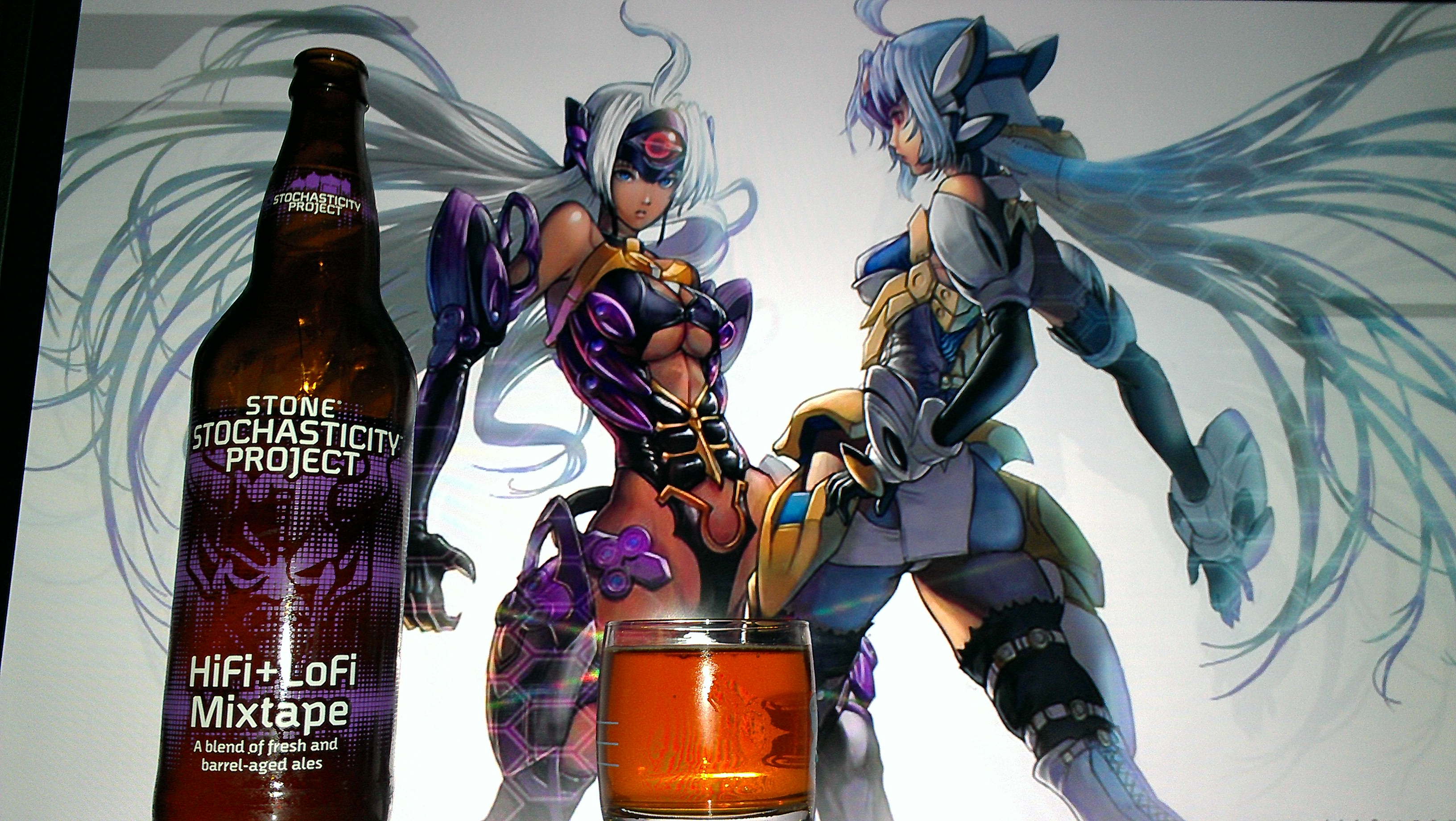 KOS-MOS or (Kosmos Obey Strategical Multiple Operation Systems), from the series Xenosaga is one of my Three most favorite characters in anime. She was chosen for this particular beer in 2012 to go along with some of my most favorite beers of all time. In terms of who she is is representative of how bad ass this beer is. To me, Black Tuesday is representative of a crash which brings about chaos. Polar to chaos is order or cosmos. While there is is a mess among chaos, there is always a glimmer of hope that will restore the balance to the universe, and that is order or KOS-MOS. In other reviews I have reviewed her character when it comes to the divine and holy (The Lost Abbey Judgement Day, Mayan Judgment, Angel Share, Sede Vacante and even Sam Adams Tetravis). In the game, SPOILER ALERT She is Mary Magdalene’s vessel for which Kaos is Jesus Christ. SPOILER ENDS. Yeah, the spoiler may not make sense but there are many websites ready to explain. Anyways, Black Tuesday label, although hard to see holds some shiny blue but also some shiny brown. The blue part represents KOS-MOS for me and the brown is the sweet chocolate. Once you find out how sweet and understanding this character is, it makes a world of a difference which is why Black Tuesday makes a world of a difference to me. Although the cold harsh reality of her initial computational robotical android form is may seem a bit cold when the series first started. Not to mention the fact that she is a definitely over powered character, which may be the alcohol and the fact that this beer should not be consumed in one sitting. She should be enjoyed slowly. The artwork also represents Black Tuesday as the dark matter of space, the upper frontiers of awesomeness and good beer. Tuesday is just another cycle of the stars.