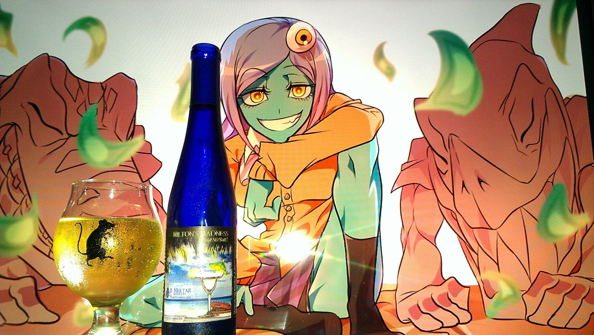 Midori from Space Patrol Luluco was used in this pairing to mainly go with the colors of the beer. Mainly Green as Midori is Japanese for Green. However, the sour and sweet like demeanor of Midori is pretty unique in the show and fitting in for the stubborn and whiney Milton was perfect to go with the overall pairing. The fact that I found some of the perfect beach pictures further enhances the eye candy to make it a great pairing.