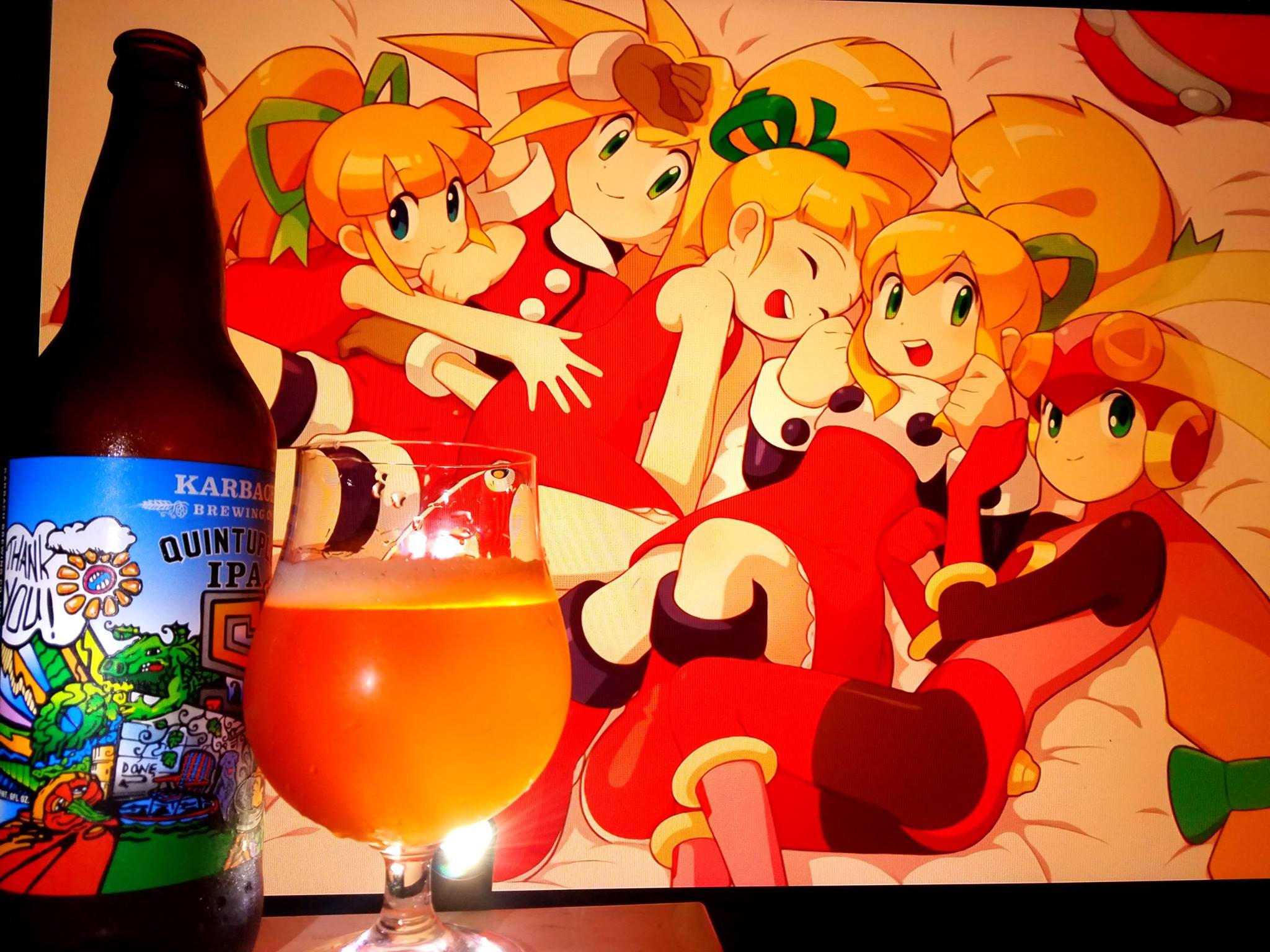 Megaman X and Alia from the Megaman X series were used in this pairing for the obvious reasons ofcourse, the label art work that is basically Megaman X. I used alia since she is a bad ass and has the same move set as Megaman X in the 8th installment. Megaman also has a pose like Pancho Pantera from the Choco Milk chocolate milk I used to drink as a kid. Oh yeah and the one here, I did for the lulzs. You see, there is this manga where this girl is wearking a shirt that says Mega Milk, like the name of the beer so yeah you can see, its anime related. Anyways, this beer kicks ass!