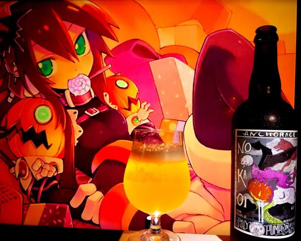 Aile from Megaman ZX was used in this pairing as I found a really nice art piece that shows Aile with pumpkins and the colors fit so well with the colors of the label and the ingredients as well. The pinks, reds and oranges are the ones that stood out so overall it was the colors that won the pairing for me.