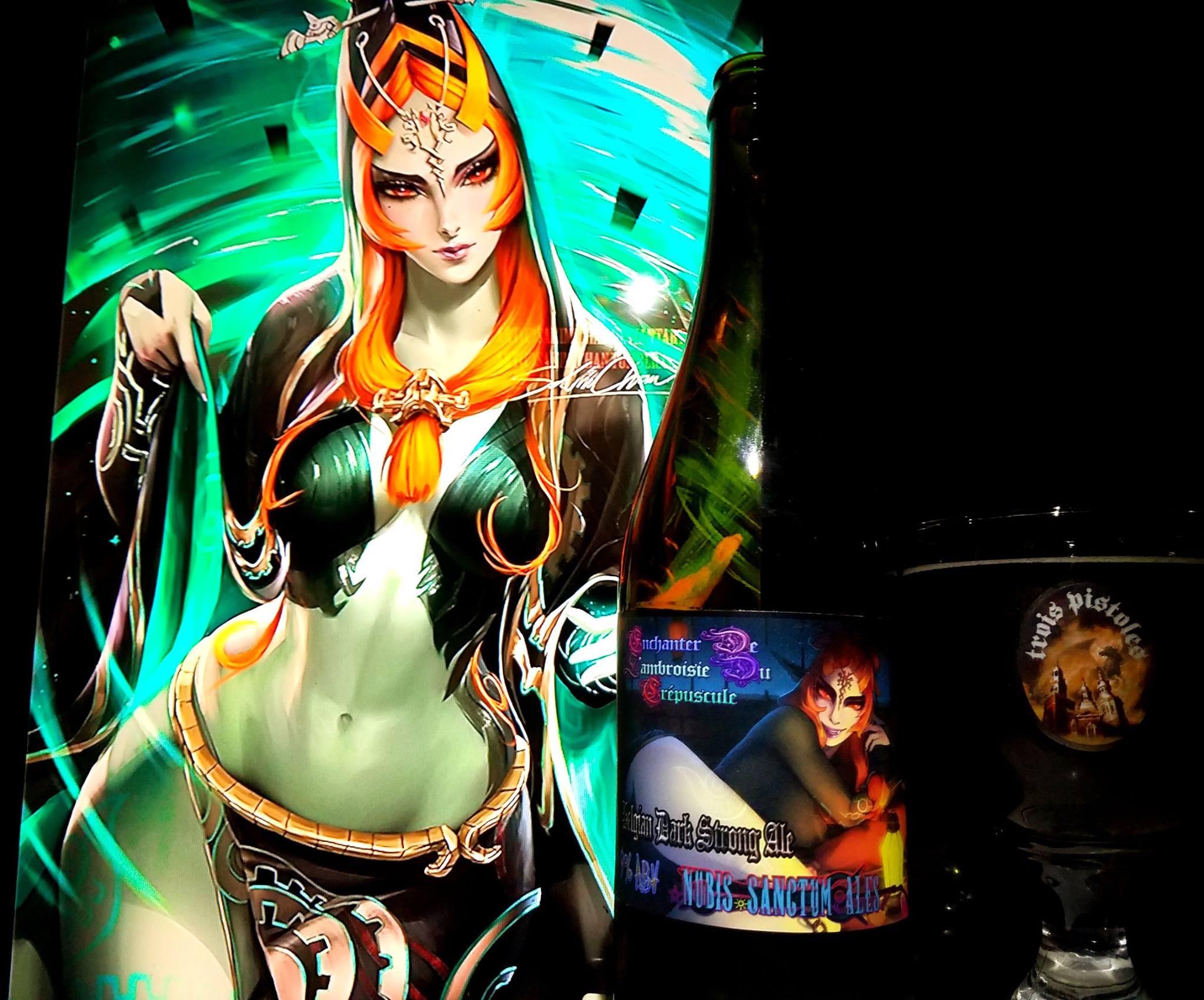 Twili Midna from The Legend of Zelda Twilight Princes was chosen once again this year for the Black Butte release as well as the other releases. Just like previous tears, I had chosen her in the previous releases since I wanted to represent the mixing of 2 of the same ale together but one specially blended. Since I did not use the chibi version of Midna for this iteration, I figure I let the adult version of her do all the talking. In this year, the Chocolate, Cinnamon and cayenne represent somewhat of a Mexican Dark Mole feel to the beer. It is actually more towards a Mexican sweet potato pie if it was mixed in with Mexican Hot Chocolate. So since Midna has a cloak like the tilma of the virgin of guadalupe it sorta ties in that Mexican culture aspect of this beer. Who’d of thought Midna would complement this iteration even more!