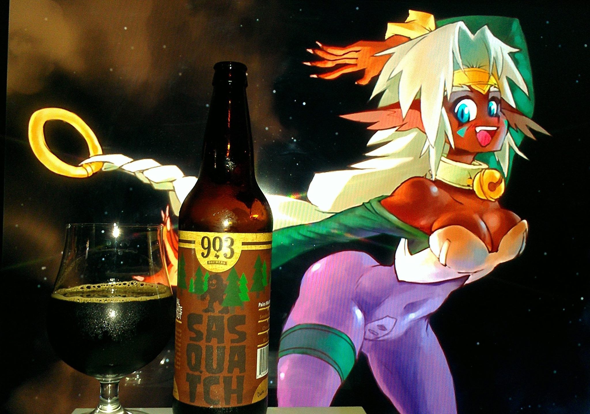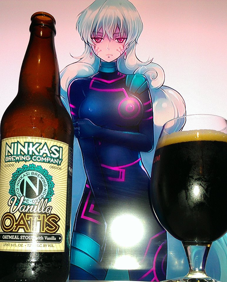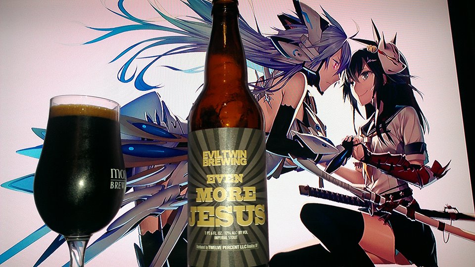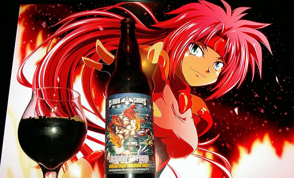 Ryuko Matoi from Kill La Kill was chosen in the previous versions of this beer. This year, since the barrel aged version is golden labeled, I am pairing also the Ryuko version with Senketsu Kisaragi. For those that do not know this form, it is the one that looks like she turned super saiyan from Dragon Ball Z increasing her power exponentially like the way the original Darkness power was increased by the process of Rye whiskey Barrel Aging. Each beer in its own means is delicious and evil as I show case the version of Ryuko when she was evil using Juunketsu (The White armored version). The original time I used Ryuko in 2013 was the original form with Senketsu so I paid tribute to that by bringing forth the Ryuko plushie in this pairing.
