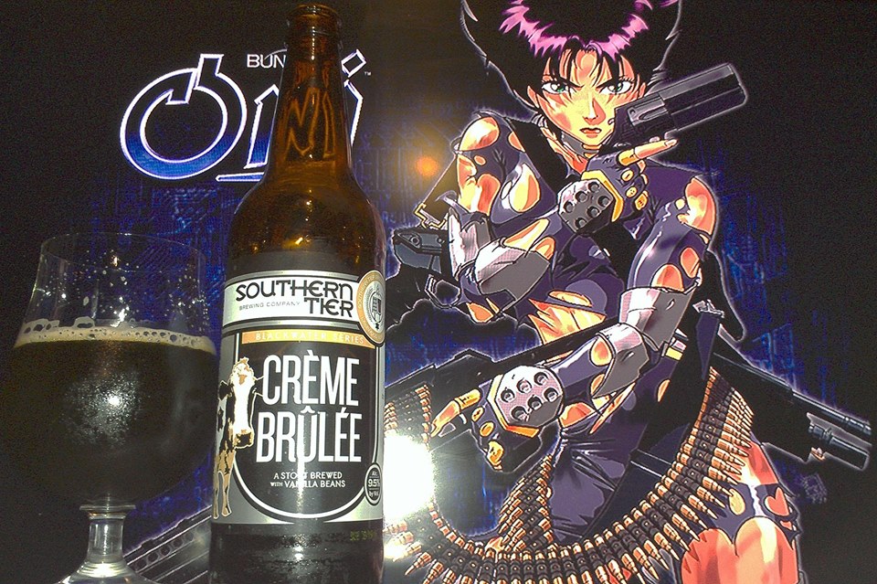 Mai Hasegawa (Konoko) from Oni was used in this pairing because I wanted to show the potency of this beer with respects to flavor complexity, ABV strength, colors and cow of the label. To start, the dark purple hair on Motoko as well as her being represent the dark fruit aspects, flan, caramel, maple syrup and crème brullee of the flavors as well as other complexities. Her sexyness and artillery represent her strength in keeping everything hidden in terms of ABV, smooth and delicious but then dangerous since you would want to drink several of these beers. The tattered clothes in different sections of the body are like the spots of a cow. Yes, she gives the milk . Sorry… what was I saying? Yes, and finally, colors of her gear and her pair well with the colors of the label. So yeah I think in my crazy crazy mind, I made it work some how. Still though, get this beer!!