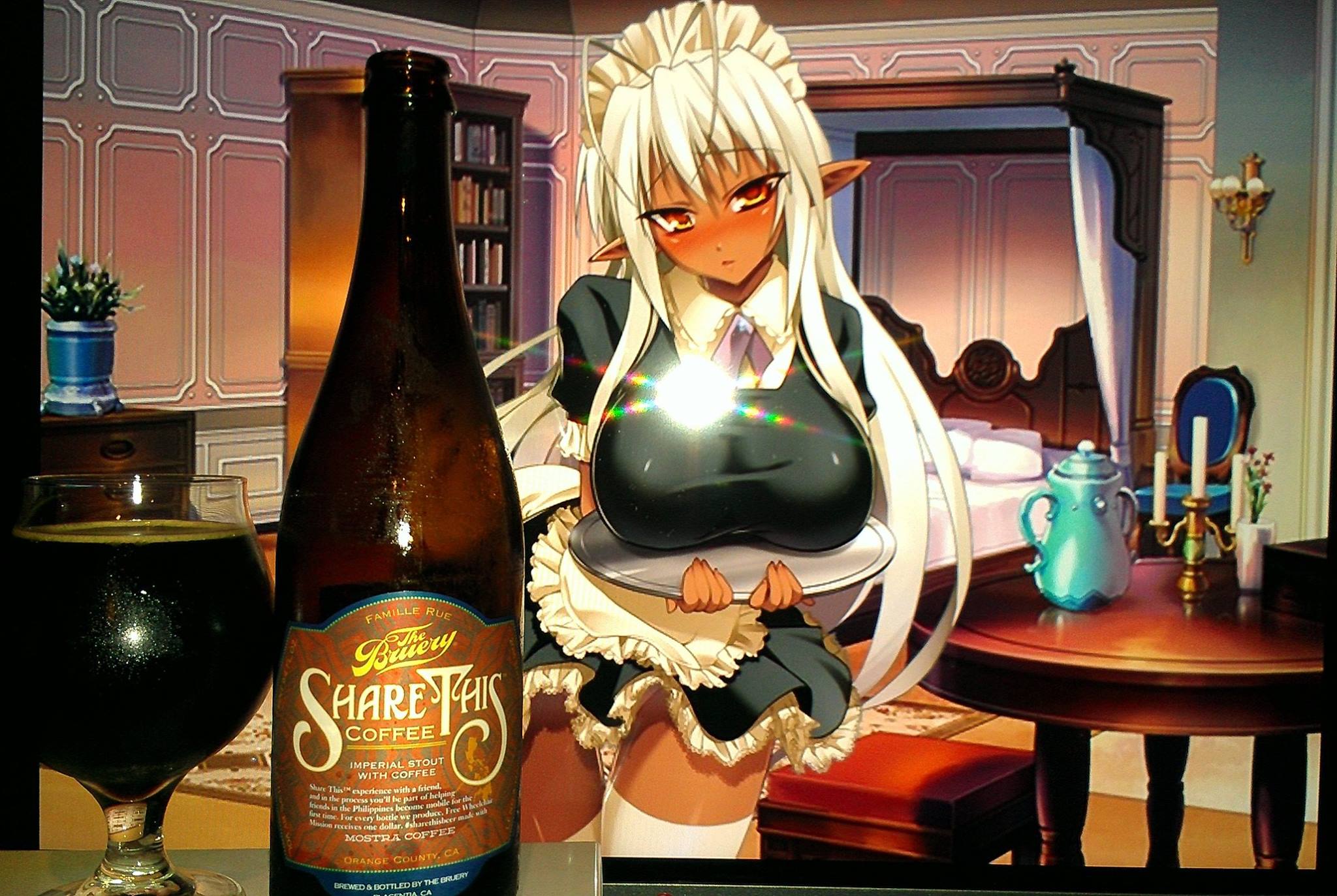 Sandaime Muramasa from Full Metal Daemon was used in this pairing since I wanted to pair the colors of the label, the flavors and the “Share” this aspect and coffee. Like a Barista serving coffee. Although, Sandaime is actually a maid in this one. Either way, I really liked the colors and the pictures. It is a character I have not paired with a beer in a very long time.