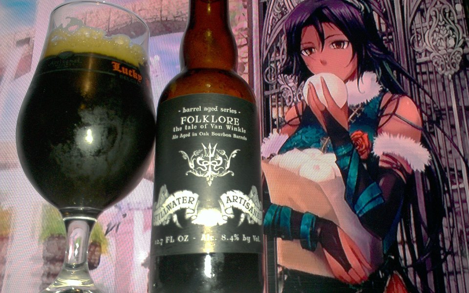 Have you ever wondered if there was an ale out there that people talk about it in myths in legends? Well maybe not beer. More like actual historical and cultural myths and legends. Folklore Mythic Tradition Ale by Stillwater Artisanal (gypsy/gangster) brewer for me is such a beer. Well mainly because I have been looking for this beer for a while. LOL but seriously, the ale is a respective tribute to the human history and how with the myths and legends that people tell define what people cultures are. Whether it be through traditions of rituals, gatherings or any form of celebration within the cultures, one thing for sure is, it is about being social and sharing stories. This brew has both good and evil written all over. It is what is awesome about the our cultures that we have both elements to bring about awareness as well as a guide as to how lead ones life through decisions. Tribute to this super fine ale. This is a Belgian yeast beer with earth hops, roasted malts and smokey oak flavor. Chocolate, cherry, plum and caramel bread overwhelms the palette with minor pine bitterness that lingers after. This ale drinks like a stout but it is not heavy like a stout. It flows well. There also seems to be some floral notes in here as well. There is also a bit of sourness too it that stays after but then is immediately replace with sweet and bitterness after every sip. Wish they would sell more Stillwater Ales here in California. Beer aside, the art is very detailed and well rich. This bottle, like the Stateside Saison or any of the other Stillwater beers is worth collecting on its own. An awesome find, legendary and mythical at that because if you ever find it, then you know the story of this ale was true >:)