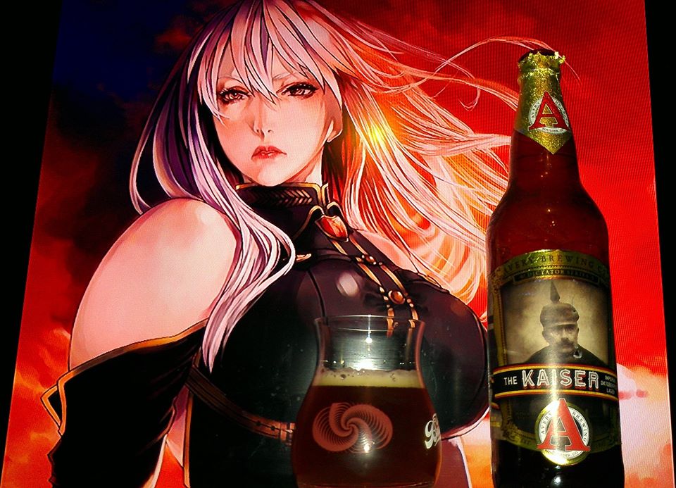 Asuka Shikinami Langley Sohryu from Neon Genesis Evangelion was chosen in this instance because of her mainly German roots and the fact that her suit holds some colors of the German Flag which is also a representative of the Oktoberfest. Because a skeleton is shown and Ballast Point is sea driven with pirates, fish, and skulls and crossbones, It would also fit as Asuka has an eye patch almost making her look like pirate. The combination fits as both Oktoberfest and Pirates party and drink happily!