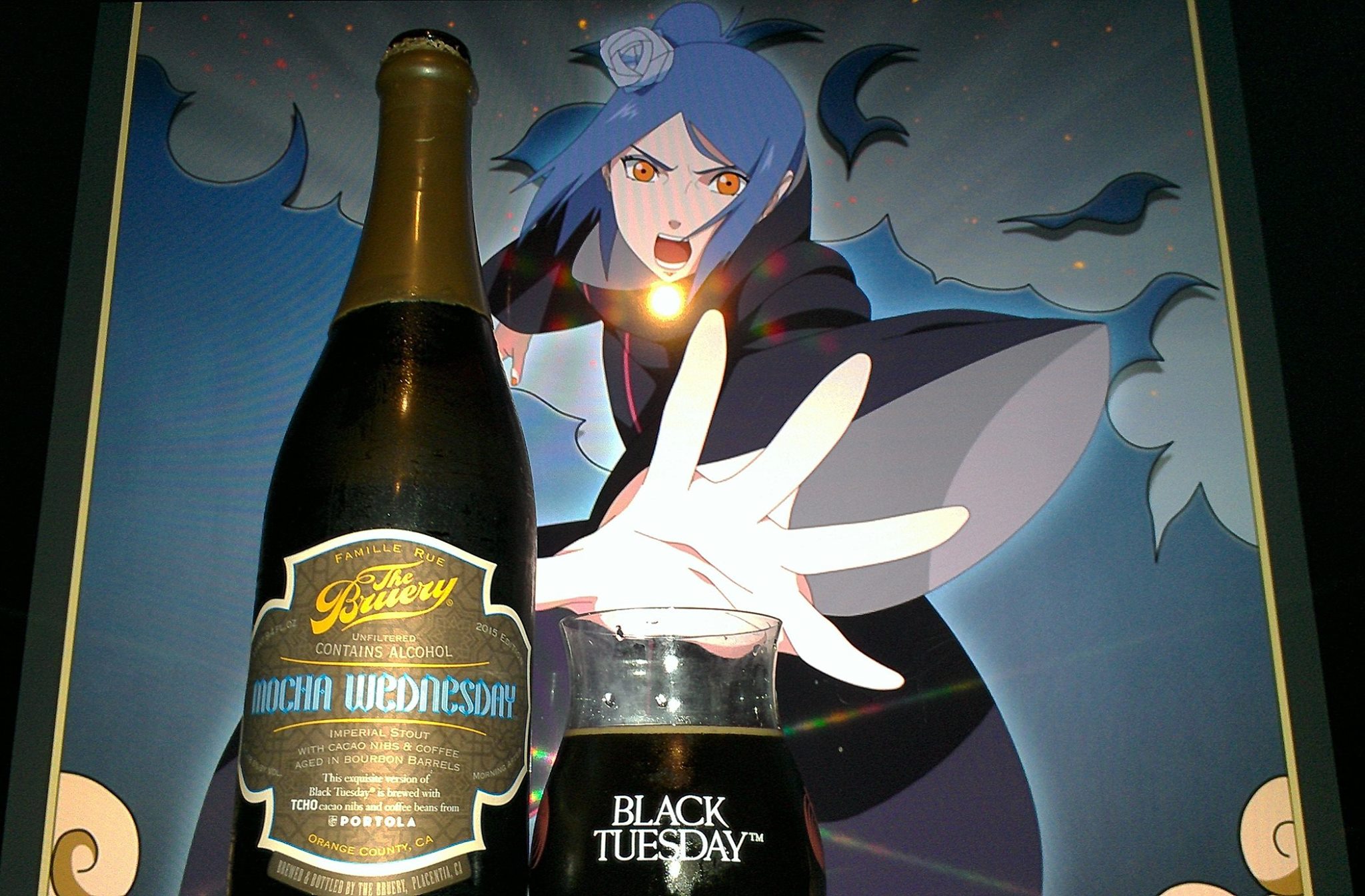 Konan of Amegakure from the Naruto has returned like in last years review and she is looking mighty gorgeous as the beer has allowed to give way to stronger and richer sweet mocha flavors. They got that right. The alcohol shows her unique strength. The perfect pairing idea came from the label and a need to find one of my favorite characters to fit. Her blue hair and hazelnut eyes fit perfect with the beer label colors. Her strength is not the only thing that matters, but the rich sweet aspects of her flavors characterizes the deep love she has for her friends Nagato and Yahiko (Also known as Pain). The rarity of this beer is the rarity of her discipline. For the smallest times you do get to see her fight, she is a bad ass ninja. Hence the reason her smoothness and seduction will make you pay greatly later on if you try to consume her in one sitting. Patience is virtue!! Aside from these aspects, if you know this character or can even guess, what other aspects of this pairing compliment each other?