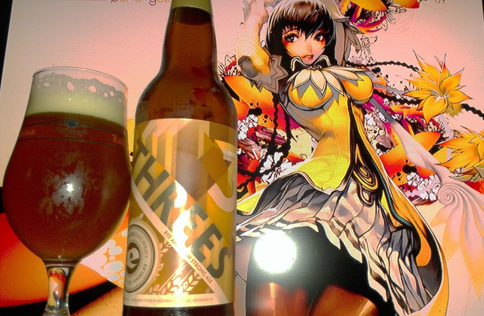 Threes Anniversary Ale by Eagle Rock Brewing is a 9.5% ABV Rye American Strong Ale.