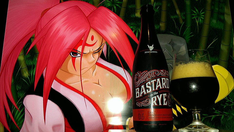 Baiken from Guilty Gear was paired with this awesome beer as she has been used since the original Arrogant Bastard. She represents the original Bastard in the sense that she follows the arts of Bushido and honor, like the honor of Arrogant Bastard which fights the good fight against Macro tasteless beers as in the original philosophy of the Arrogant Bastard. This time, she is surrounded by the sugar canes and smoking her pipe to represent the oak and rye. The mission to not only surpass the pre-prohibition era as synonymous to bring more of the craft movement forward is ongoing and forever, she will bring the Arrogance forward as a weapon of delight!… Or so I am told, either way, don’t mess with her, she will make you pay.
