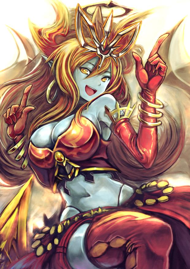 Ultimate evolution Hera from Puzzles and Dragons was used in this pairing as I wanted to find a character that would fit the colors of the new RuinTen evolution, the orange and vanilla, the gargoyle and the fact that I used the blue skinned Zabel Zarock/Lord Raptor female version from Dark stalkers. All of which represented Ruination to the now RuinTen with the oranges and vanilla.