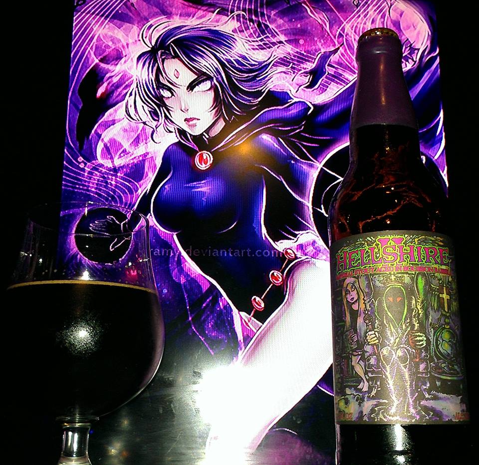 Raven from Teen Titans was used in the original Hellshire II. I wanted to bring her back for the 2nd review to show her as a stronger and more flavorful Imperial stout than the original. Right away,m you should be able to tell that Raven pairs greatly with the all aspects of the beer like the darkness of pitch black, death, hell, the label colors, the flavors and the strength of the beer. The first art depicts of how even though she has become stronger, the markings on her body (depicting the infection of the beer) have not stopper her but rather have given here an immense flavor complex and provided a balance to what would have been a pure sour beer but instead focused on the balance overall instead. Great job to Raven!!