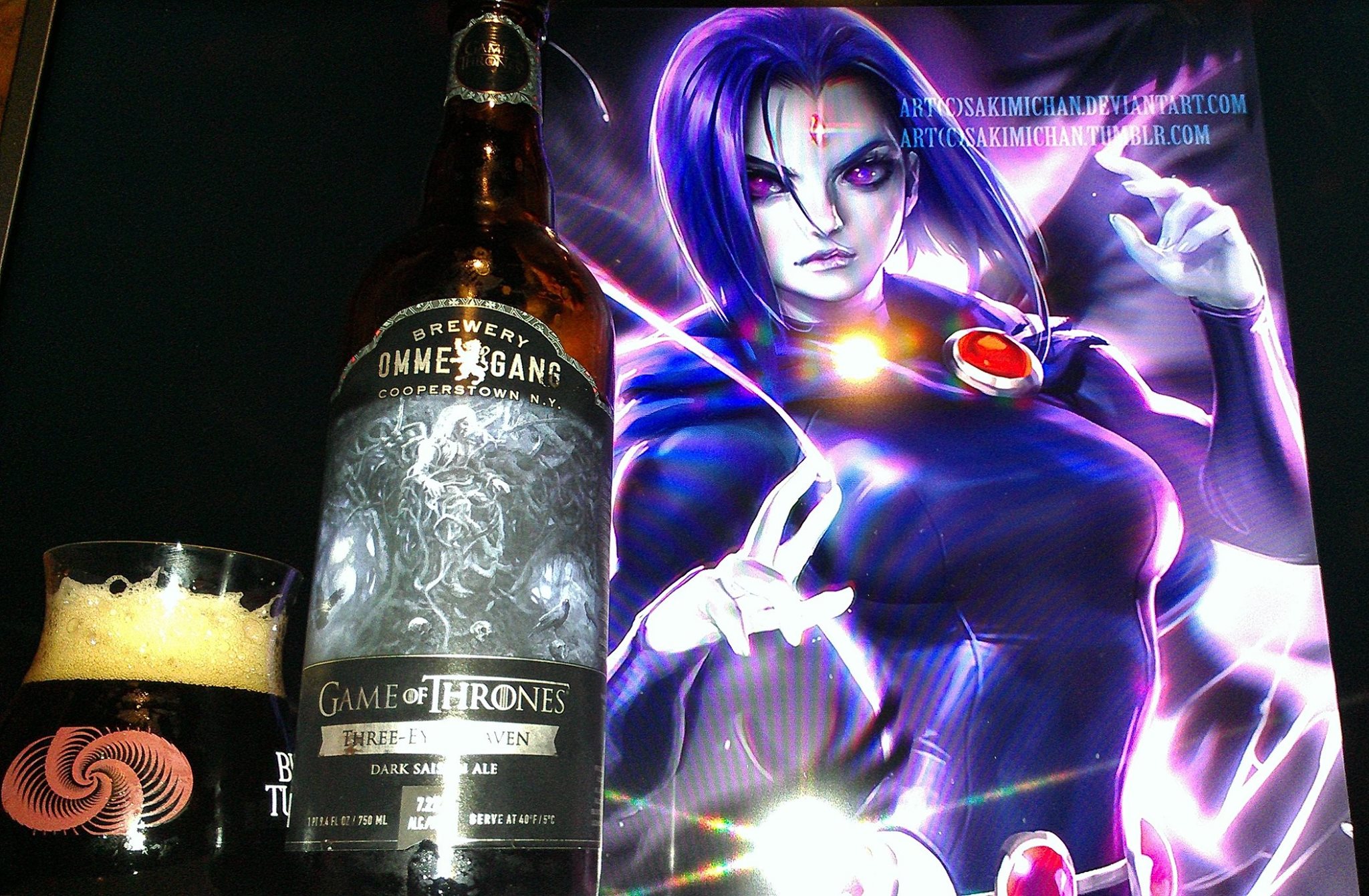 Raven from Teen Titans was used in this pairing as I wanted to find a character from anime, or in this case comics, that would pair with the way the Three-Eyed Raven looks in the show. Always in darkness and in cloak. The most obvious was Raven from the Teen Titans as she has those looks and also the 3 eyed part can be seen as she has her regular 2 eyes and the red jewel on her forehead used as a bindi which can be seen as the Ajna Chakra or Third-Eye Chakra. The colors she wears also pairs with the colors of the different dark fruits that can be found in this beer and the complex aspect of the beer is the complex aspect of her character.