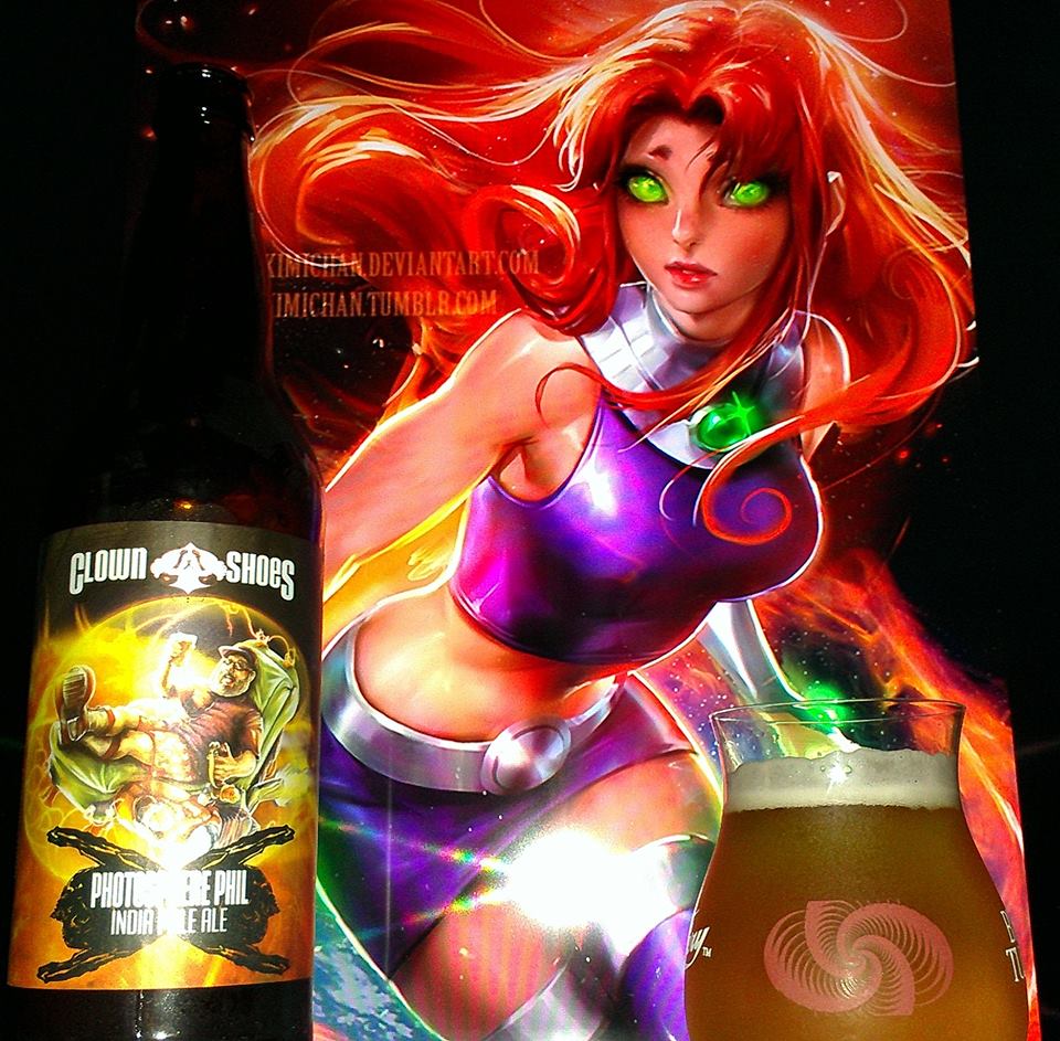 Koriand’r a.k.a Starfire from Teen Titans was used in this pairing as I wanted to find a character that would pair with the fiery sun but also the whole Space Cake aspect of the beer. Her colors go well with the color’s of Phil’s couch and just lounging. Starfire is as strong as the strength of the hops but is also as gentle as the drinkability and lighter side of the space beer.