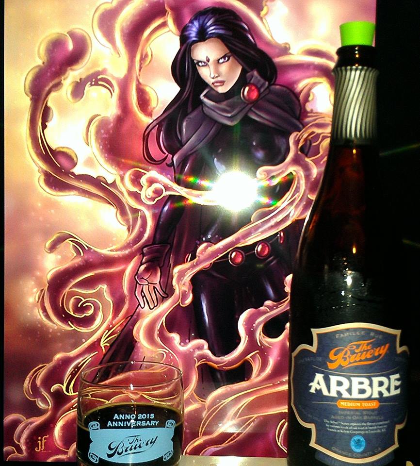 Jinx from Teen Titans was used in this pairing as I wanted to go with the colors of raspberry but also the whole aspect of cloaks as it relates to both monks and witches. Quads are mainly a Belgian Abbey or Trappist monk beers but even since the origins of beer, witches have been the ones making beer since the old days. Anyways, I figure since Jinx kind has that witch look about her, she was perfect to go with this beer pairing in my mind.