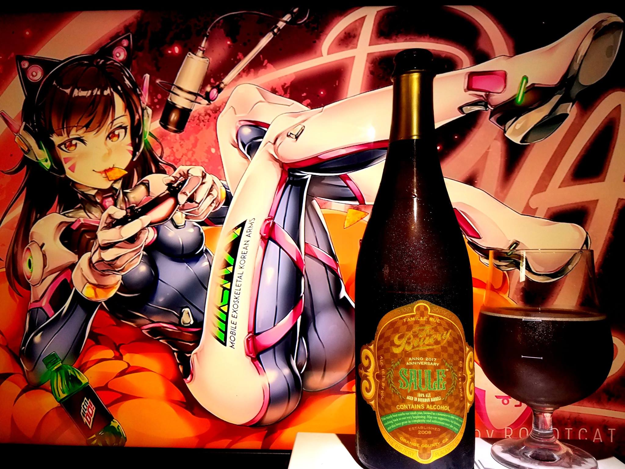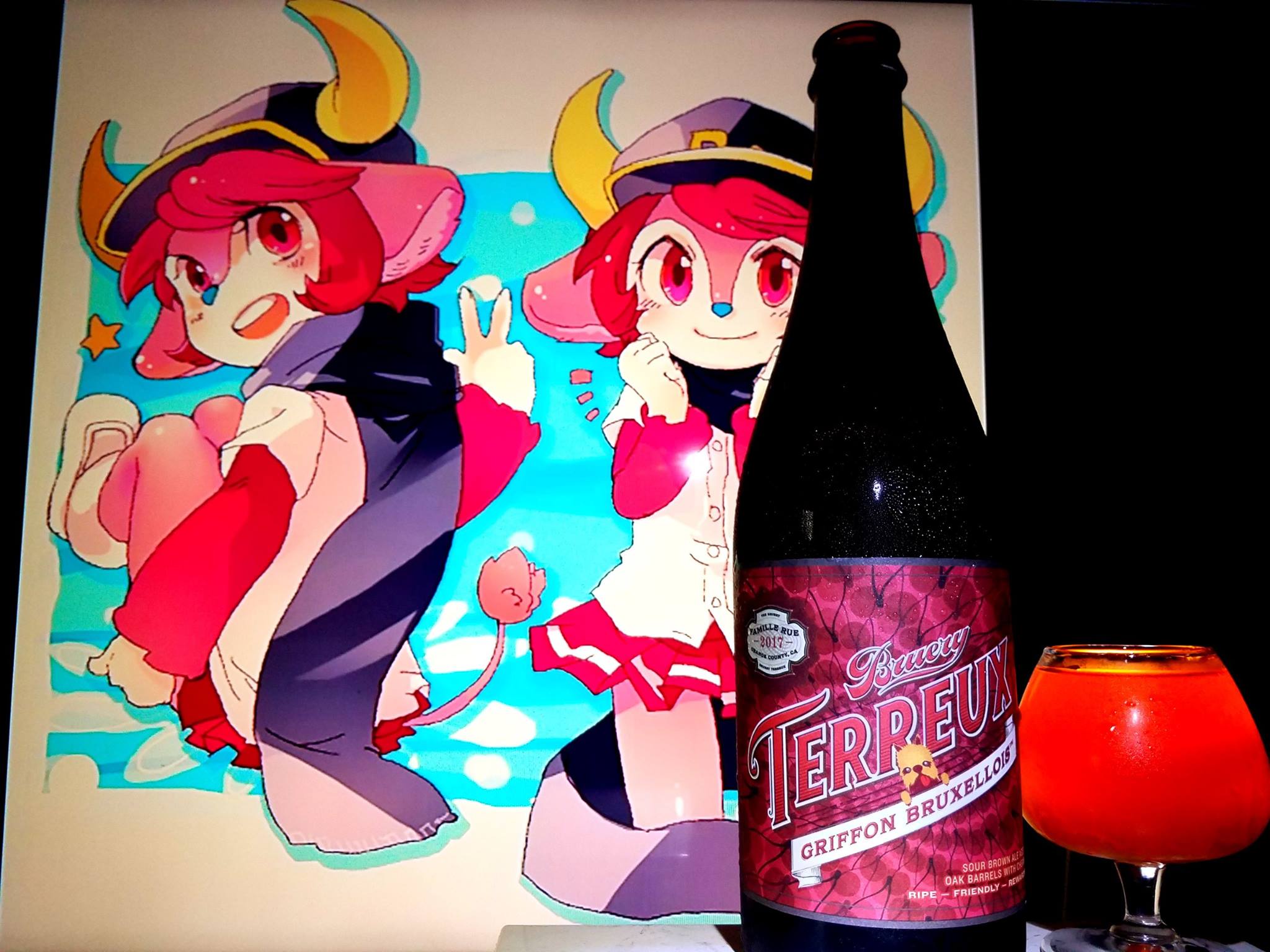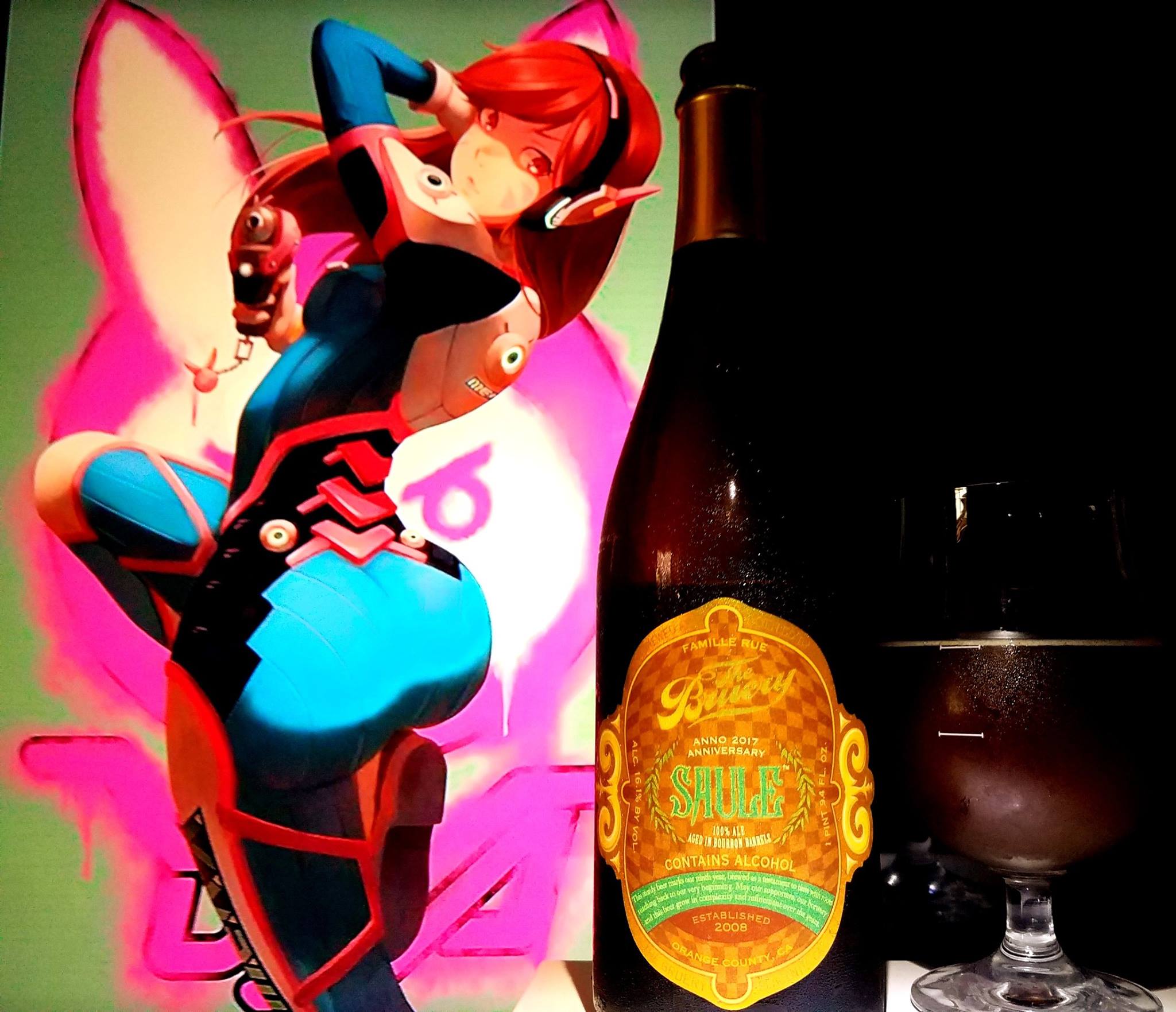 Sailor Rini Moon/Chibi Usa/ Dark Lady from Sailor Moon and the Rini/Dark Lady inspired characters Star Guardians Lux and Jinx from League of Legends were used in this pairing as I wanted to bring Rini to a Bruery beer. Since the artists that released some special art of the inspired Lux character, I wanted to bring her into the pairing as well. She looks just like Rini. Jinx looks just like Dark Lady, which is essentially Rini grown up. The pairing for this beer was mainly for the color but also her character which is mainly sweet but sour at times.