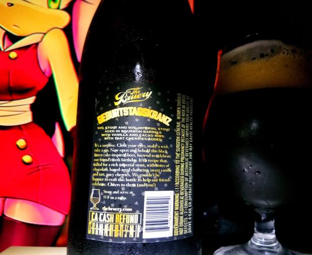 2016 Vindictive collaboration by Sans Liege Wines and The Bruery is a 14.9% ABV Black Tuesday (Imperial Stout aged in Bourbon Barrels) with Grenache, Syrah and Mourvèdre grapes aged in New American Oak Puncheons