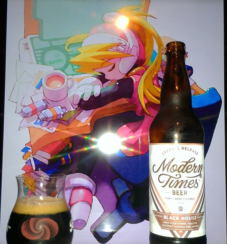 Ciel from Megaman Zero and original girl from Misaki Kurehito were used in this pairing since I wanted to find something in relation to coffee and coconut. The light white haired girl as she sits on the coffee cup represents that. Ciel represents the waking up in the morning to a cup of this delicious brew. Or you could also see it as her drinking too much of this brew and passing out as she writes special beer reviews lol.