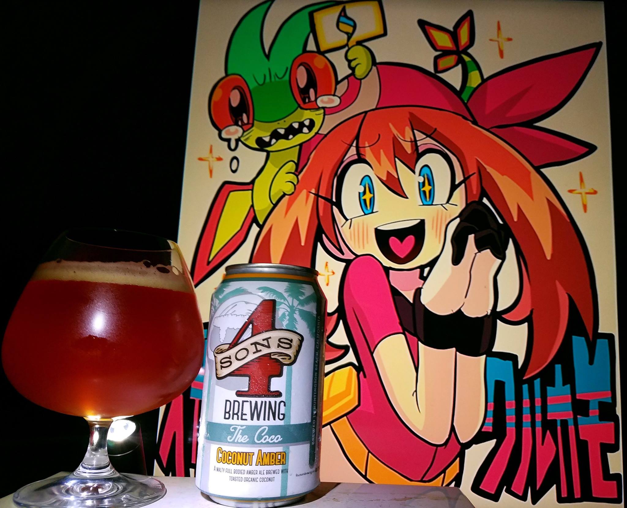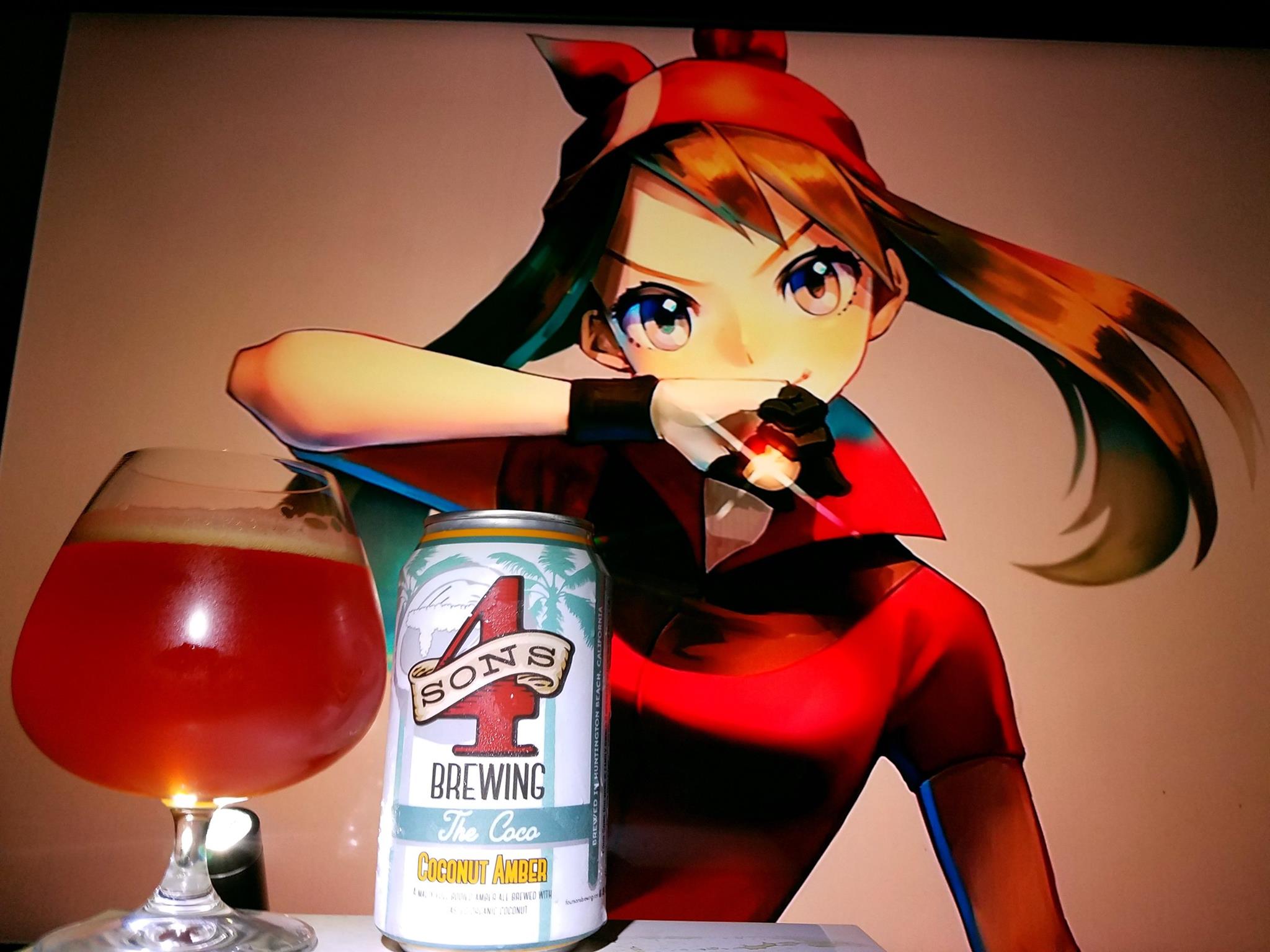 The Coco Four Sons brewing is a 5.2% ABV Amber Ale brewed with toasted organic coconut.