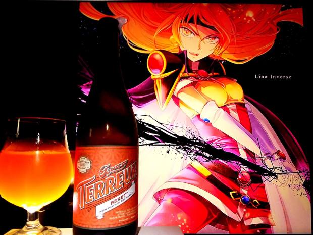 Lina Inverse from Slayers was used in this pairing as she seems to fit greatly with the colors of the label and the beer overall. Lina is a character I have not used in a long time and a favorite of mine. Since I have done a lot of Bruery beers, doing the pairings with at least one Anime character that I know of or fits well is definitely an accomplishment.